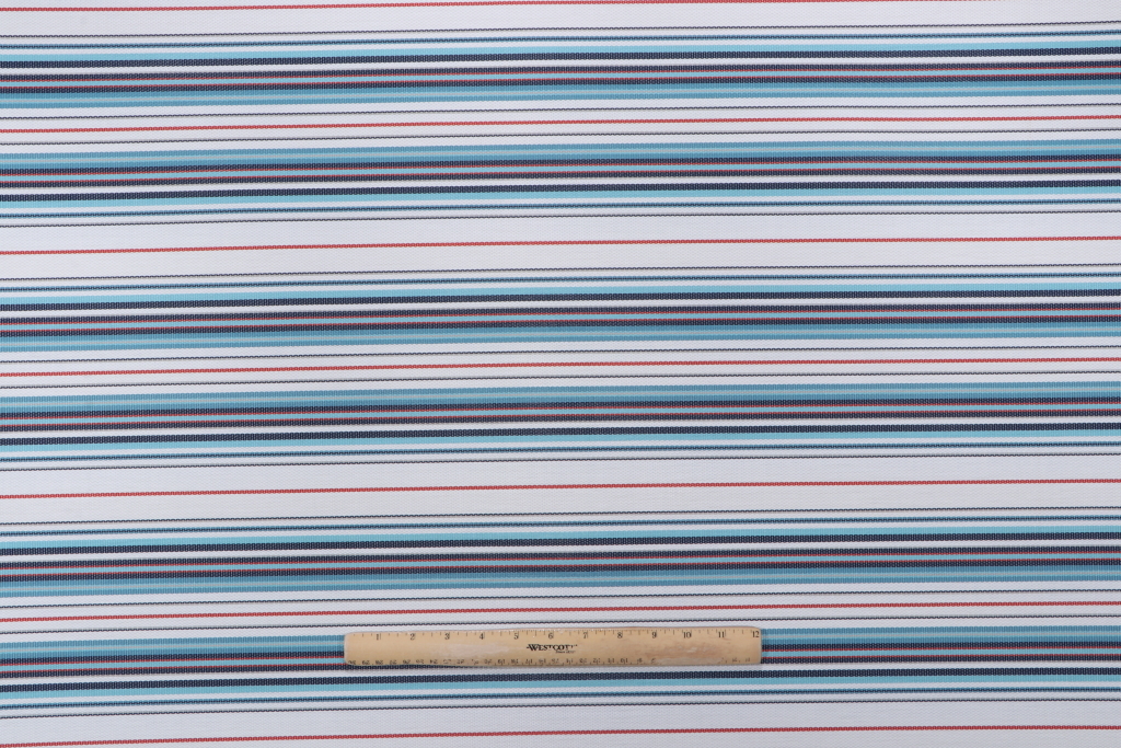 Phifertex Woven Vinyl Mesh Sling Chair Outdoor Fabric in Blue/Red/White is a remnant, which is sold as a whole piece.
