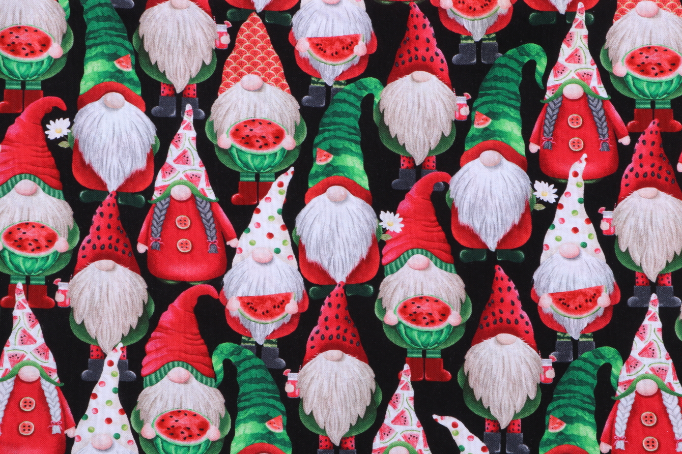 Sample orders of Timeless Treasures Watermelon Gnomes Printed Cotton Craft Fabric in Black are not refundable.