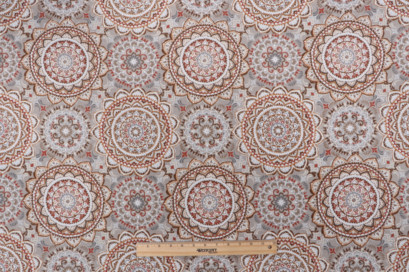 Featured here is 8 yards of Fabrics Patnos printed polyester outdoor fabric from Bryant. Make a statement with Bryant fabrics, crafted for elegance, durability, and timeless appeal. With beautiful hues of rosy brown, dark gray, gray, silver, and indian red, this fabric will perfectly accentuate your project. Perfect for recovering multiple patio chair cushions, sewing a stylish outdoor canopy, or making waterproof seat covers for boats or poolside furniture. Note: If you are unsure about the suitability of this fabric for your specific use case please contact us prior to ordering.
