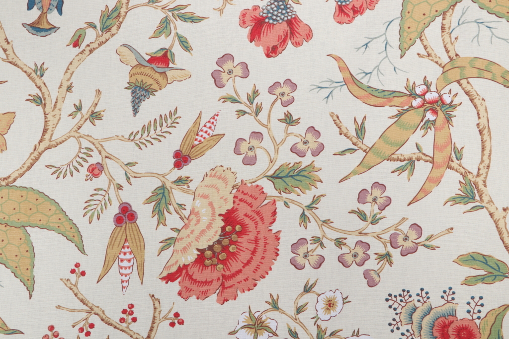 Thibaut Chinoiserie Floral F95341 Printed Drapery Fabric in Cream is a remnant. Fabric remnants refer to leftover pieces of fabric from production runs at manufacturing sites or pieces that remain from by the yard stock. The lengths of these remnants can vary from a few inches to several yards and are typically sold at a reduced price, since they represent remaining inventory.