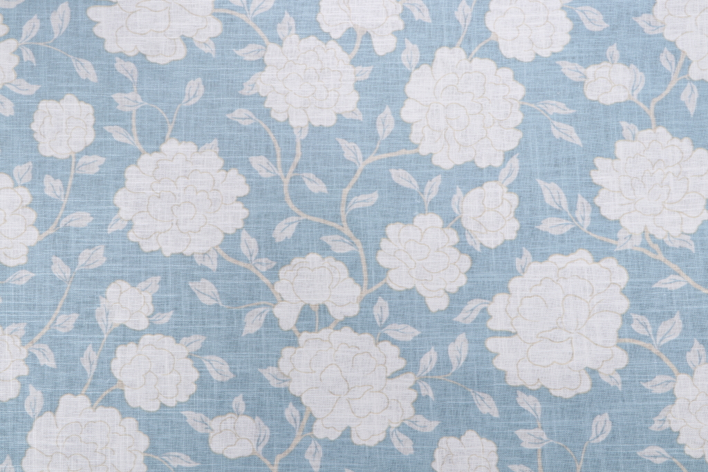 7.5 Yards Vern Yip Floral Printed Linen Blend Drapery Fabric in Light Blue for Trend Details