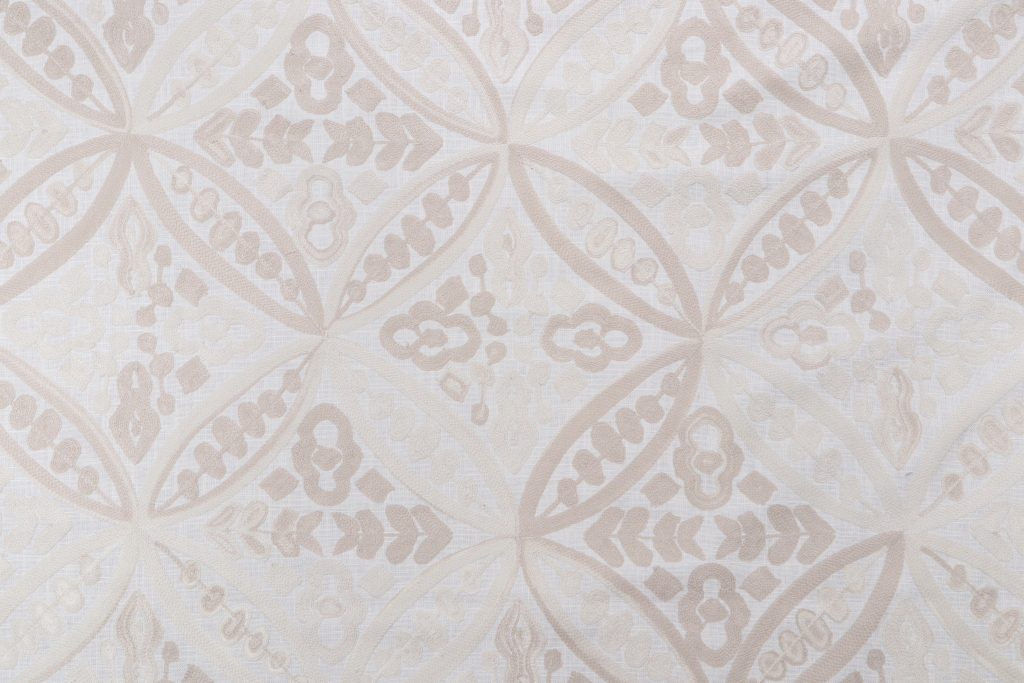 Waverly Local Crafts Embroidered Drapery Fabric in Sandrift is a remnant. Fabric remnants refer to leftover pieces of fabric from production runs at manufacturing sites or pieces that remain from by the yard stock. The lengths of these remnants can vary from a few inches to several yards and are typically sold at a reduced price, since they represent remaining inventory.