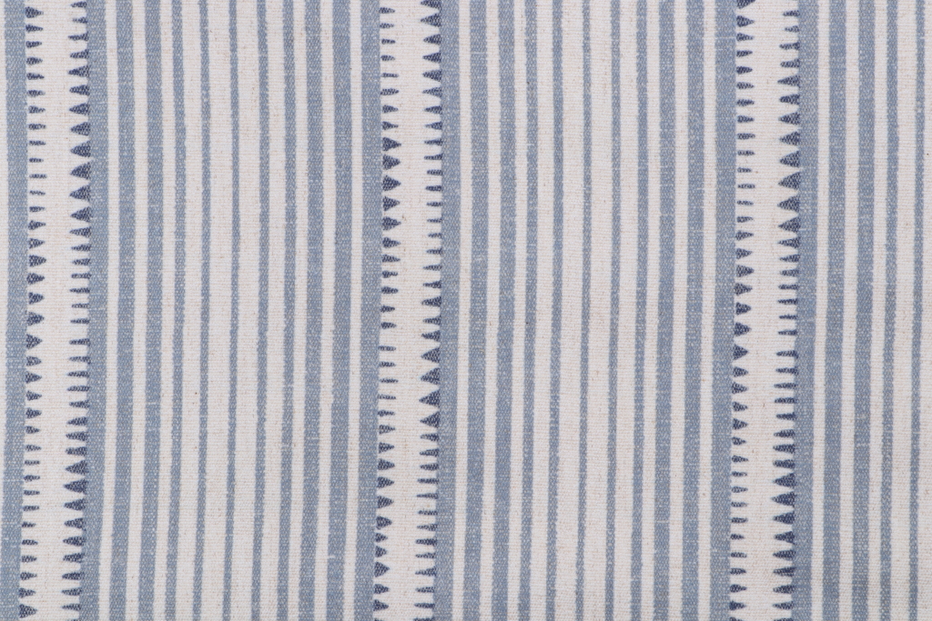 Wesley Hall Stripe Printed Chenille Decorator Fabric in Chambray is a remnant. Fabric remnants refer to leftover pieces of fabric from production runs at manufacturing sites or pieces that remain from by the yard stock. The lengths of these remnants can vary from a few inches to several yards and are typically sold at a reduced price, since they represent remaining inventory.