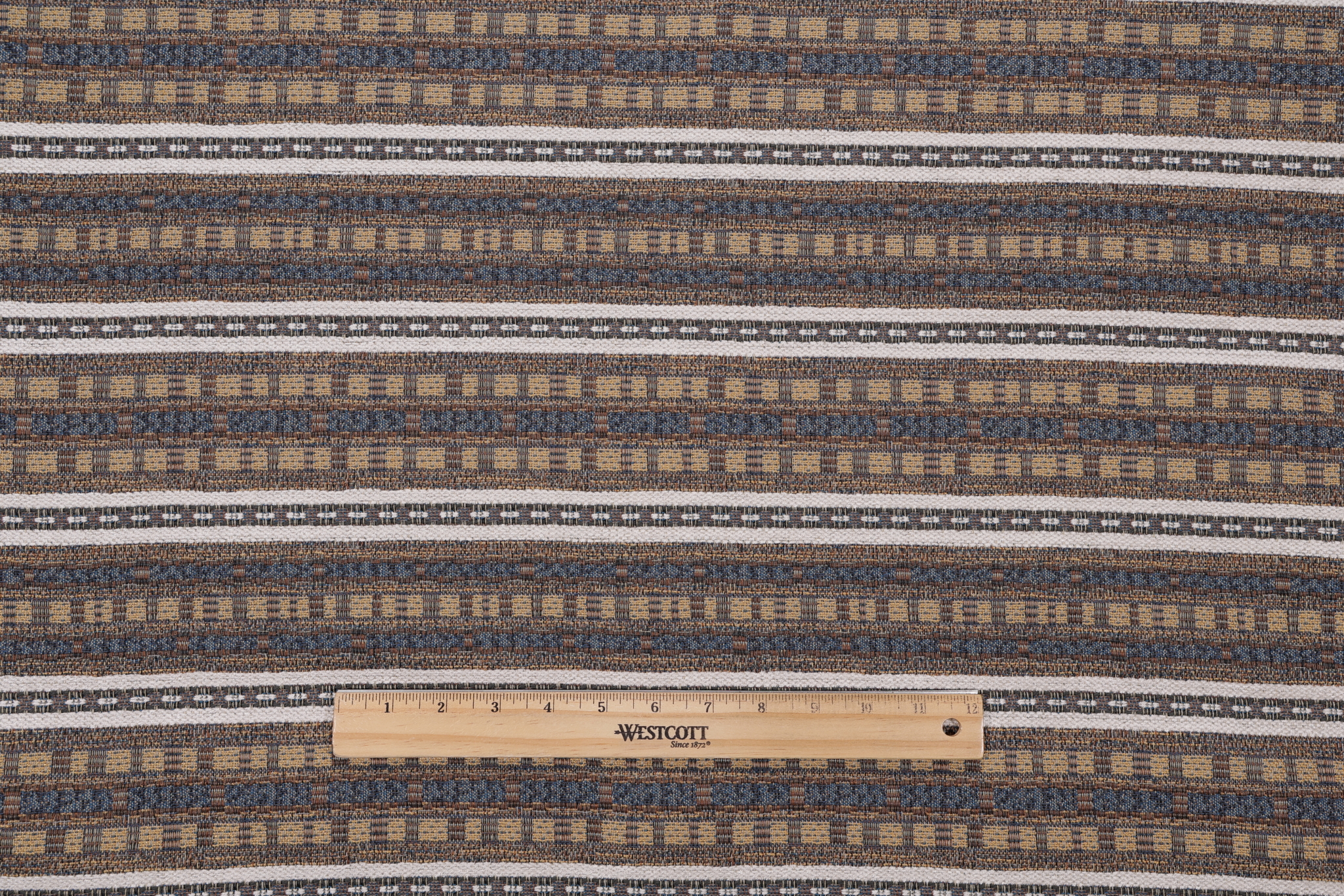 1.13 Yards Hamrick Woven Upholstery Fabric in Blue/Coffee Details