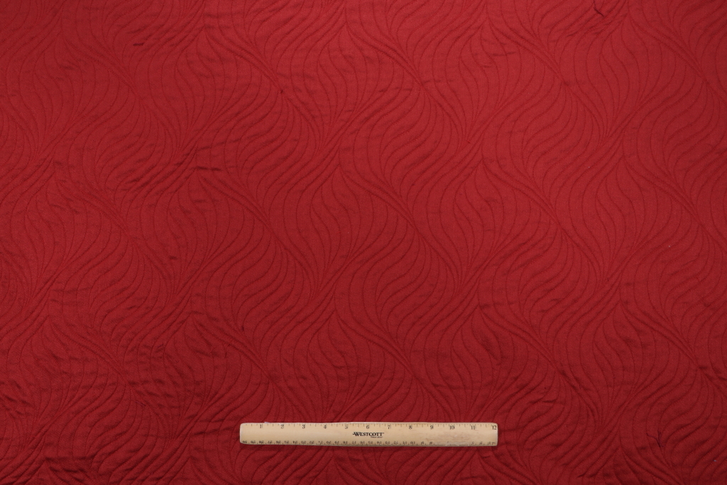 Thibaut Garden Path Matelasse W85393 Upholstery Fabric in Red is a remnant. Fabric remnants refer to leftover pieces of fabric from production runs at manufacturing sites or pieces that remain from by the yard stock. The lengths of these remnants can vary from a few inches to several yards and are typically sold at a reduced price, since they represent remaining inventory.