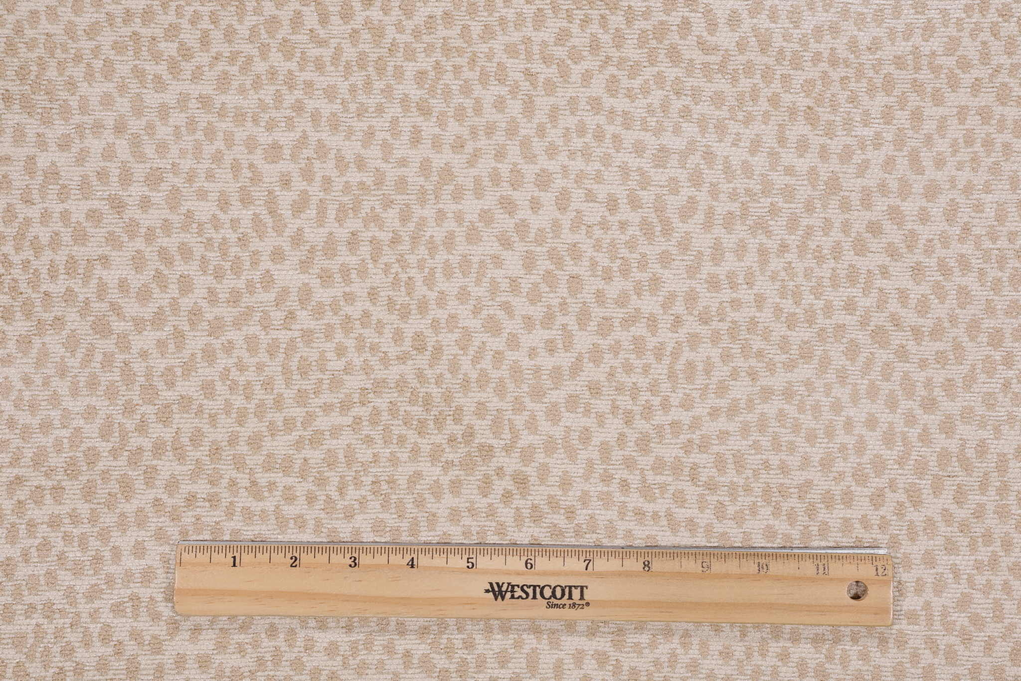 If you order a sample of Leona Woven Chenille Upholstery Fabric in Sand the size of the swatch you receive will be approximately 4" x 6". This is enough fabric to verify color and texture, but may not be large enough to capture an entire pattern.