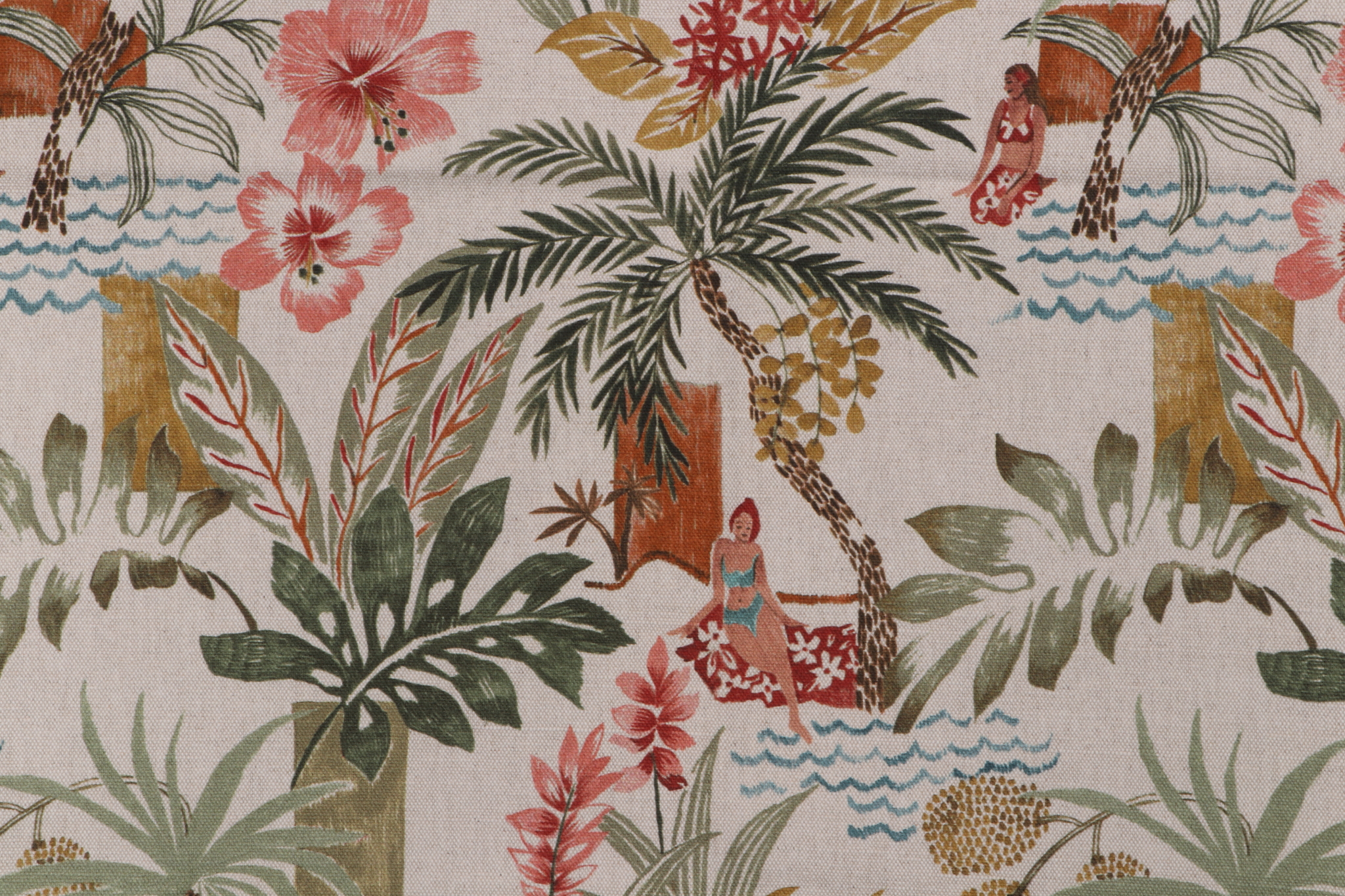 Belle Maison Bora Bora Printed Linen Blend Drapery Fabric in Sand Dune Details