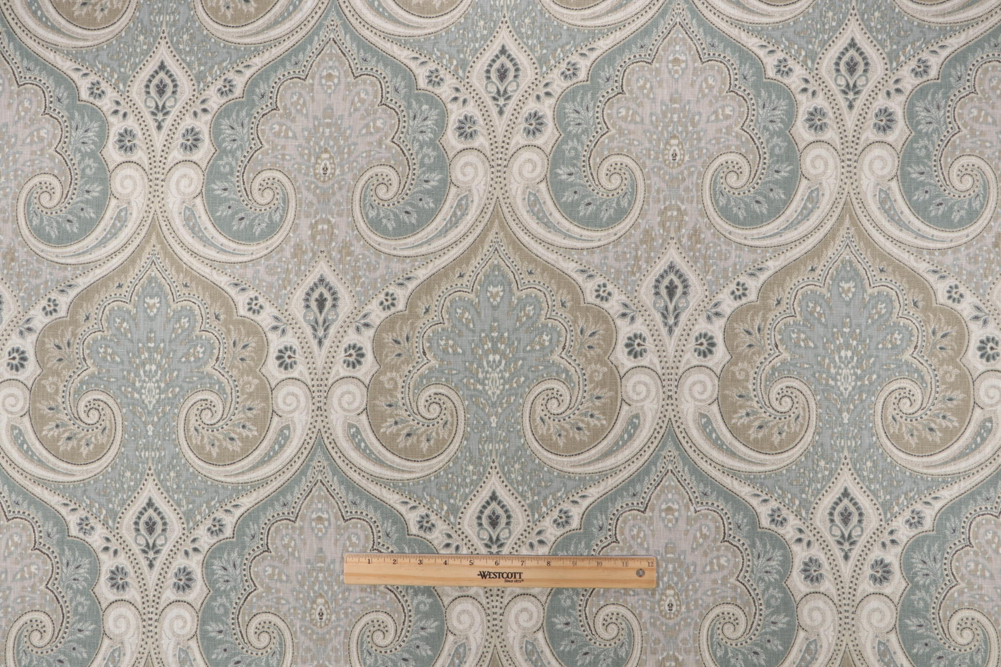6.25 Yards Kravet Latika Printed Linen Drapery Fabric in Seafoam Details