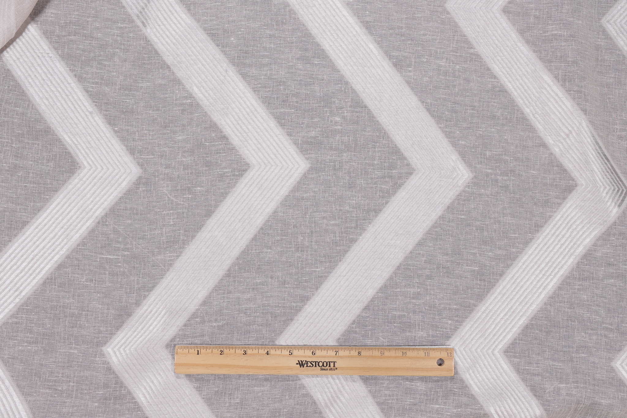 If you order a sample of Anna French Adalar Chevron AW9134 Sheer Embroidered Drapery Fabric in Flax for Thibaut the size of the swatch you receive will be approximately 4" x 6". This is enough fabric to verify color and texture, but may not be large enough to capture an entire pattern.