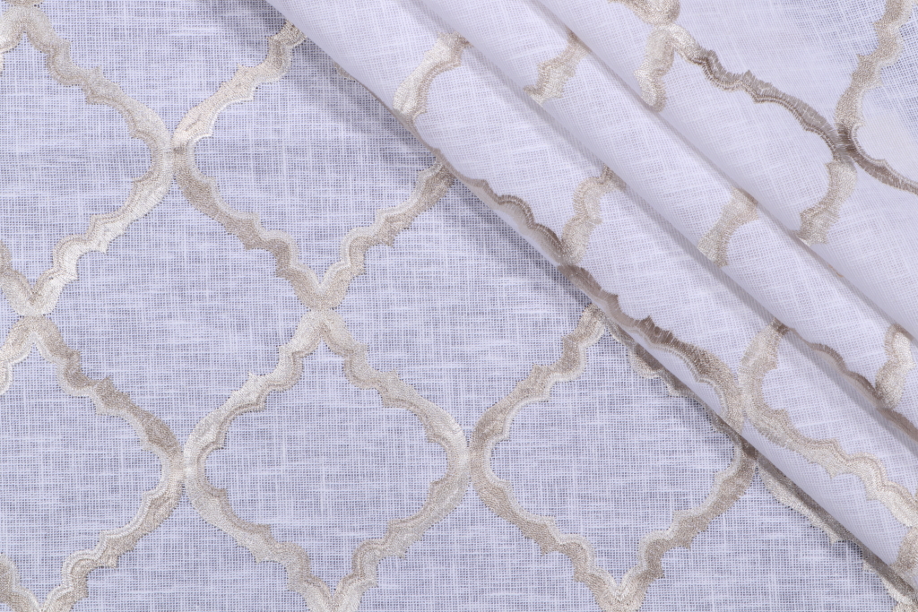 Davis Semi-Sheer Embroidered Drapery Fabric in Pebble is a remnant. Fabric remnants refer to leftover pieces of fabric from production runs at manufacturing sites or pieces that remain from by the yard stock. The lengths of these remnants can vary from a few inches to several yards and are typically sold at a reduced price, since they represent remaining inventory.