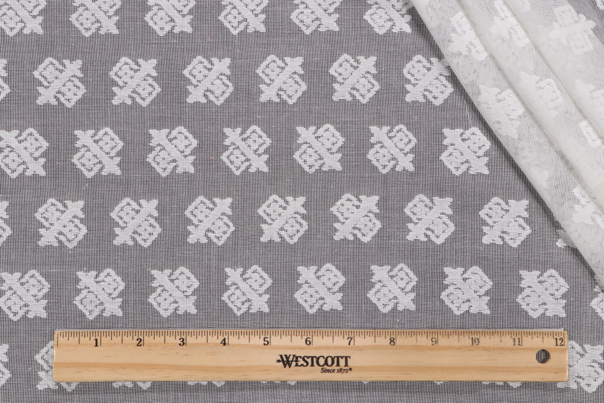 Presenting 6.75 yards of Fonthill Prestwick Lace, an exquisite drapery fabric by Scalamandre. Scalamandre is a heritage brand known for its opulent textiles, frequently featured in luxury estates, historic restorations, and high-end interior design projects. With this amount, you can create 2 medium-length drapery panels (50 inches wide and 84 inches long) for standard 7-foot windows. Gray, silver, dark gray, gainsboro, and thistle are the primarily featured colors in this fabric. Note: If you are unsure about the suitability of this fabric for your specific use case please contact us prior to ordering.