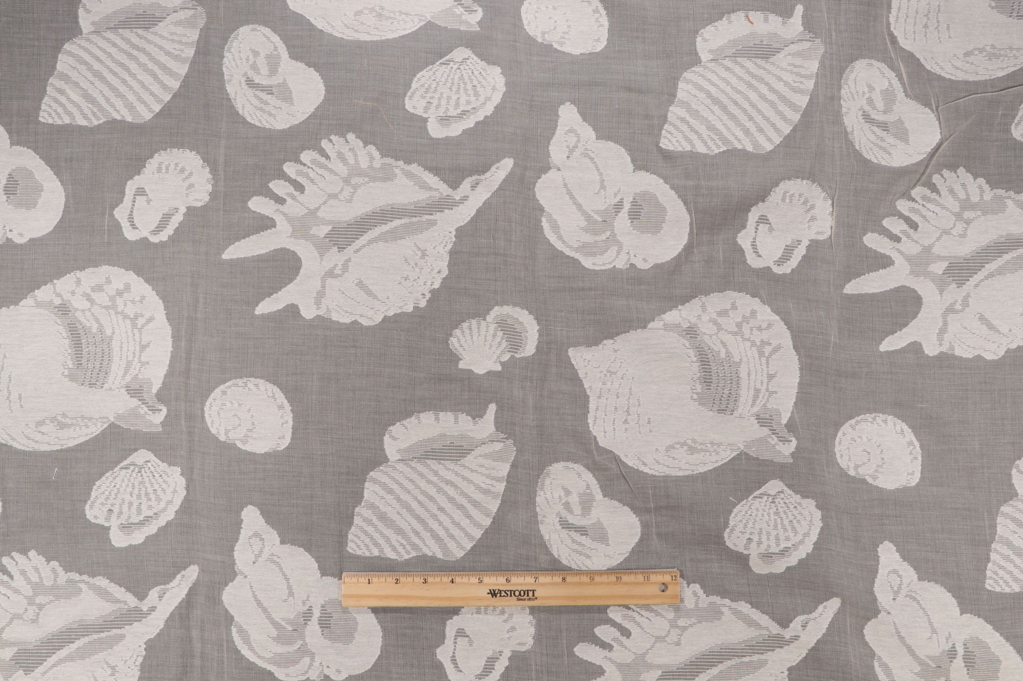 If you order a sample of Grey Watkins Sheer Shells Lace Drapery Fabric in Natural for Scalamandre the size of the swatch you receive will be approximately 4" x 6". This is enough fabric to verify color and texture, but may not be large enough to capture an entire pattern.