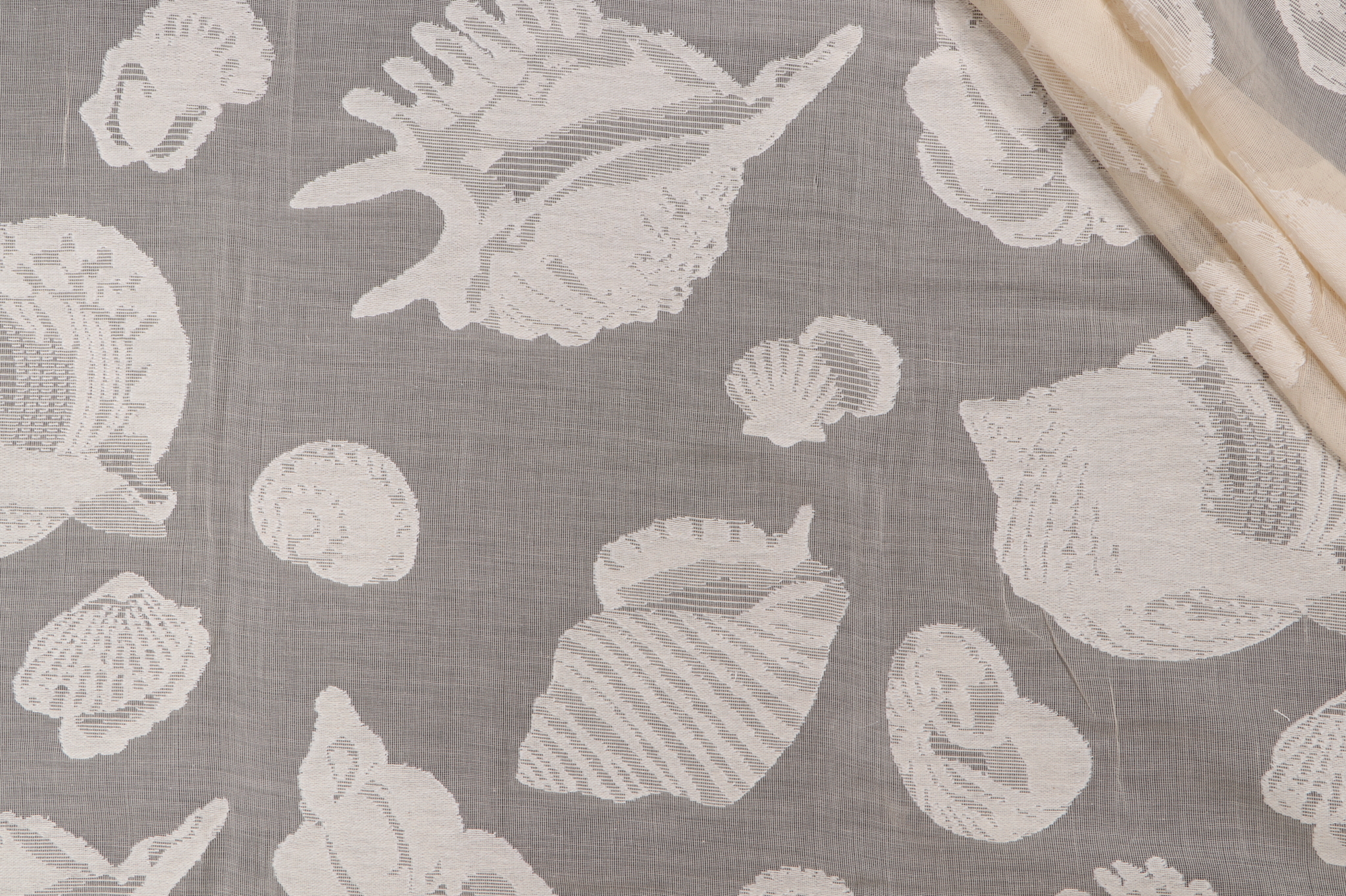 Grey Watkins Sheer Shells Lace Drapery Fabric in Natural for Scalamandre Details