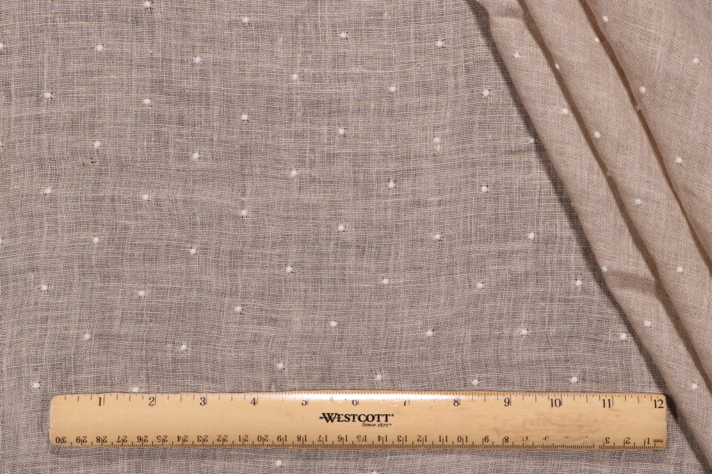 Now offering 3.13 yards of Musings Semi, a high-quality sheer embroidered drapery fabric. This fabric is suitable for short curtains, decorative tiebacks, or smaller window treatments. This fabric provides an exceptional foundation for luxury home décor. Perfectly balanced with hues of rosy brown, gray, tan, dark gray, and dim gray, this fabric will surely enhance your application. Note: If you are unsure about the suitability of this fabric for your specific use case please contact us prior to ordering.