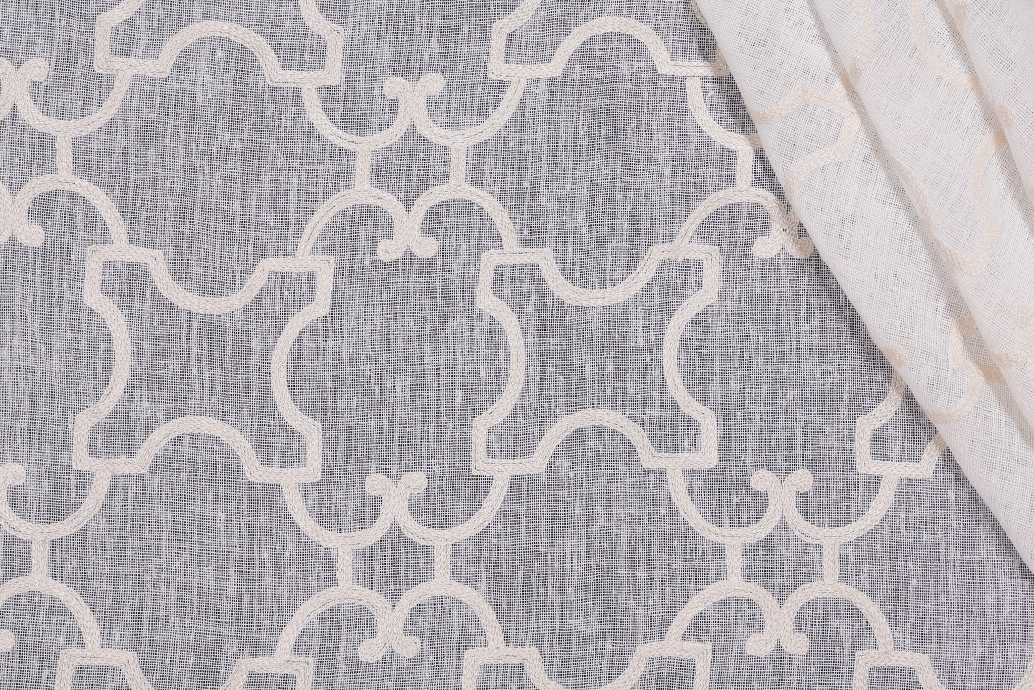 6 Yards Nicolette Semi-Sheer Embroidered Drapery Fabric in White Details