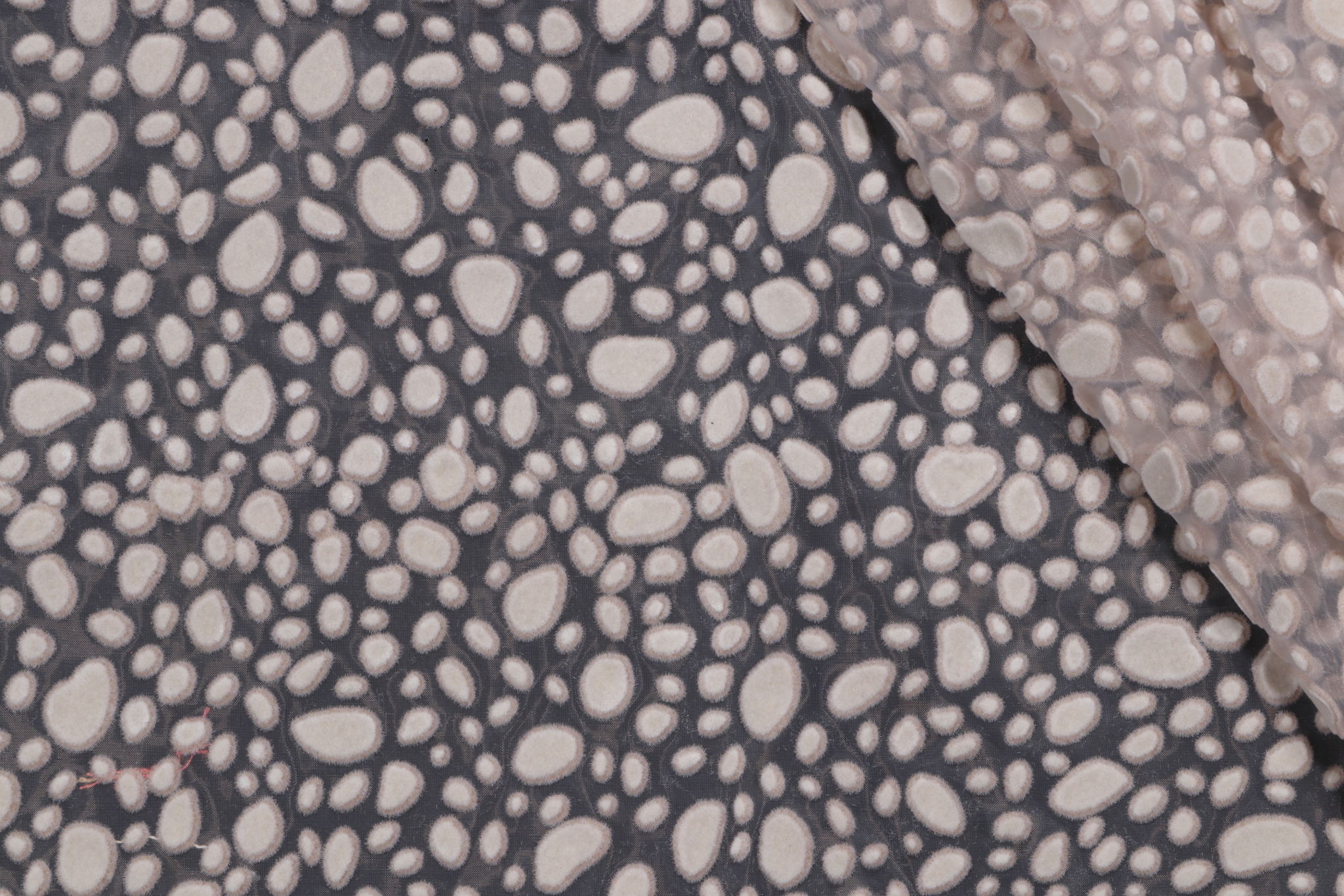 Old World Weavers Rain Dance Flocked Sheer Drapery Fabric in Pearl is a remnant, which is sold as a whole piece.