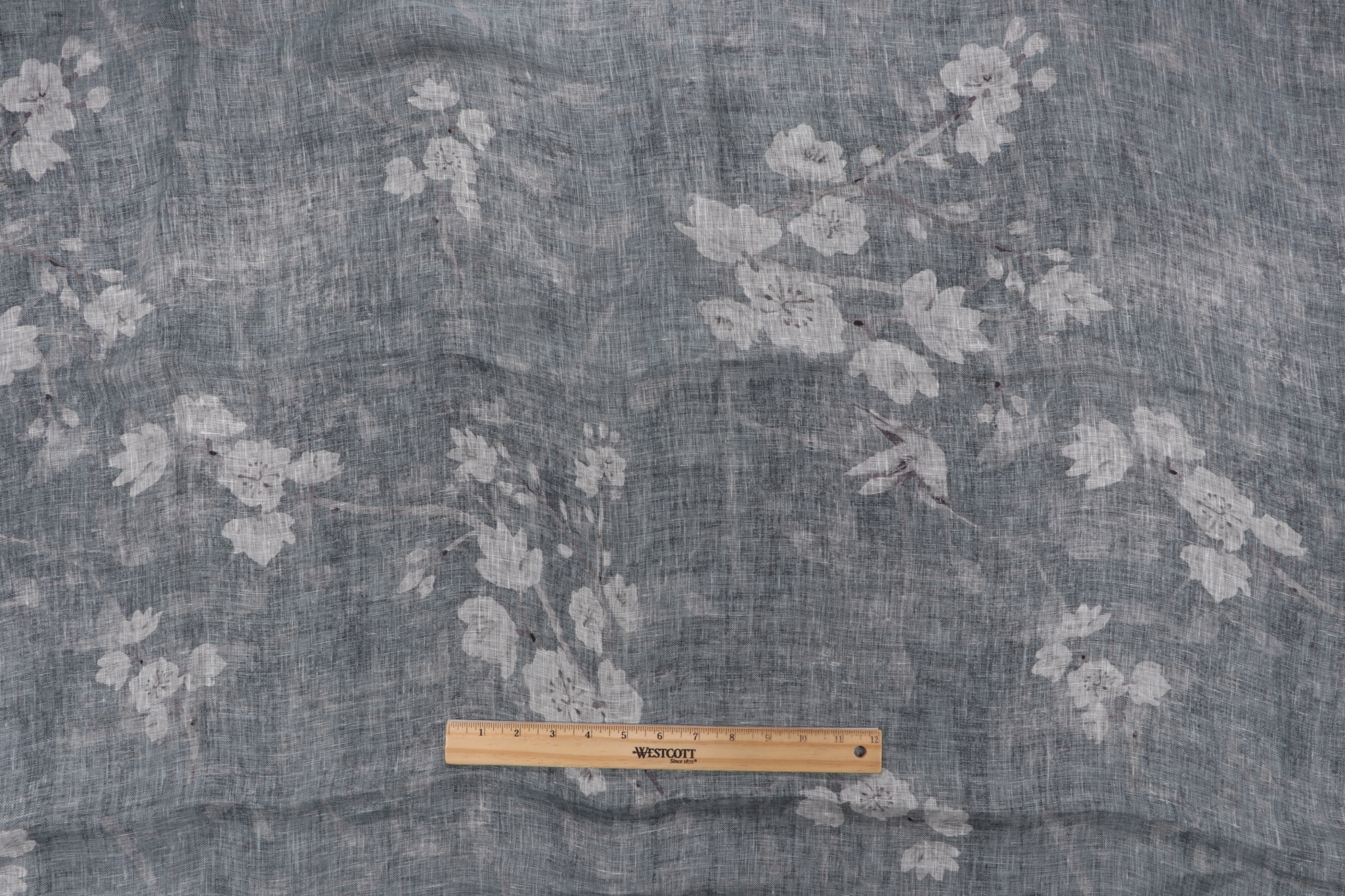 Scalamandre Blossom Fantasia Sheer Embroidered Drapery Fabric in Slate is a remnant, which is sold as a whole piece.