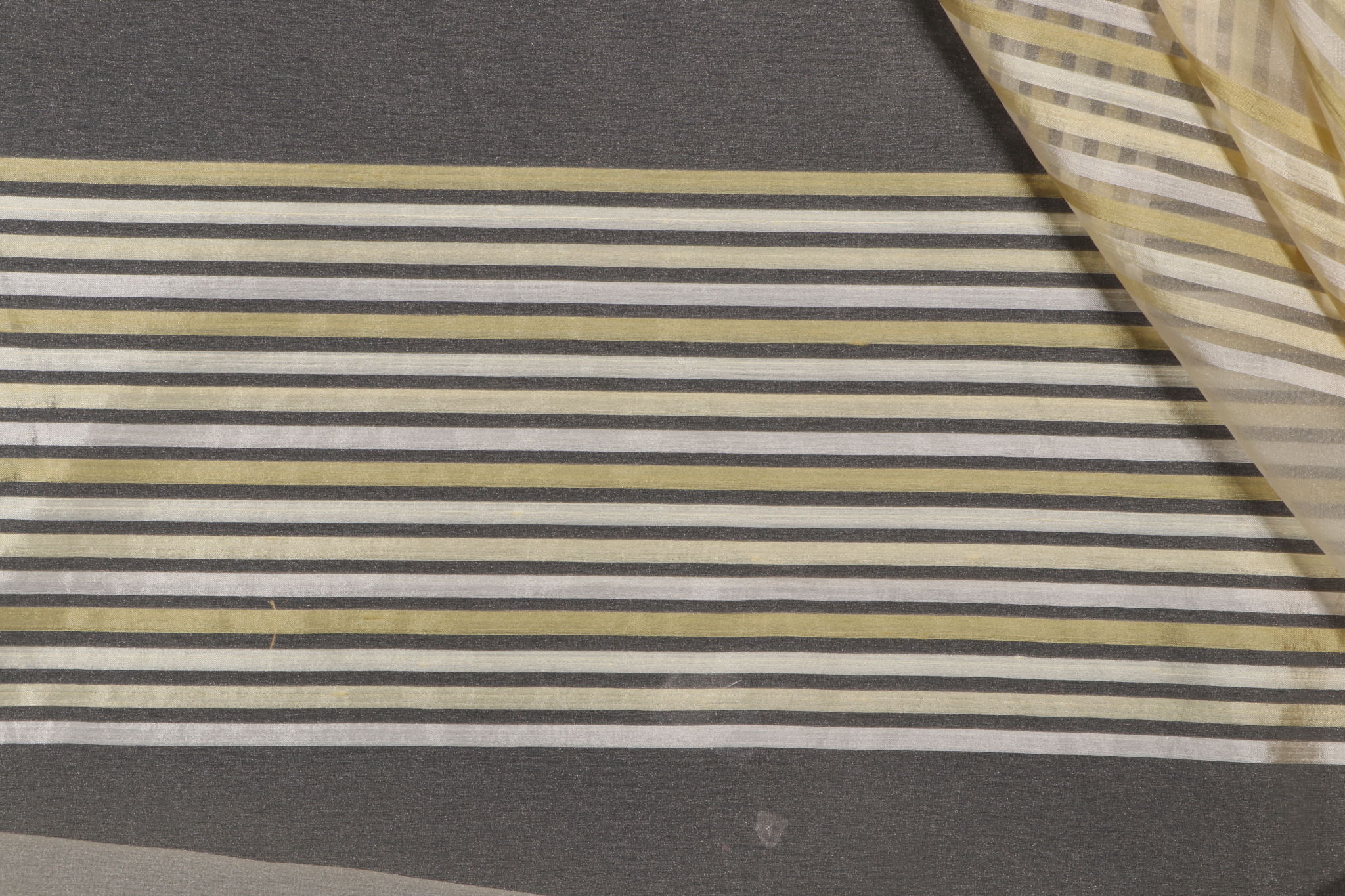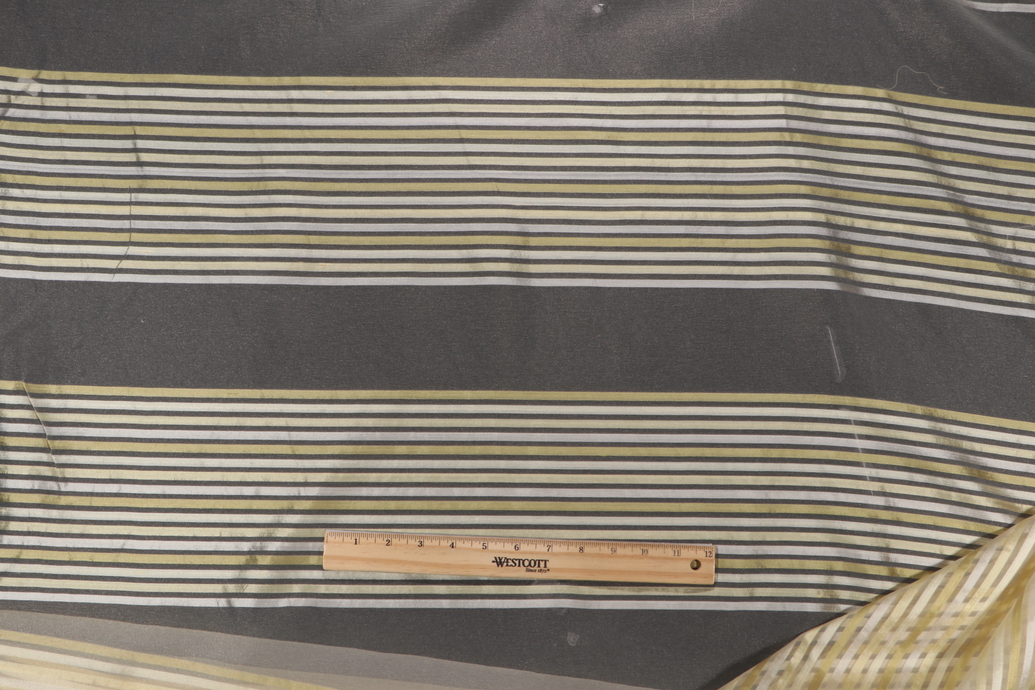 Featured here is 3.38 yards of Sheer Stripe Weighted drapery fabric from Scalamandre. This fabric is suitable for short curtains, decorative tiebacks, or smaller window treatments. With beautiful hues of dark olive green, dim gray, dark slate gray, silver, and dark gray, this fabric will perfectly accentuate your project. Scalamandre is a heritage brand known for its opulent textiles, frequently featured in luxury estates, historic restorations, and high-end interior design projects. Note: If you are unsure about the suitability of this fabric for your specific use case please contact us prior to ordering.