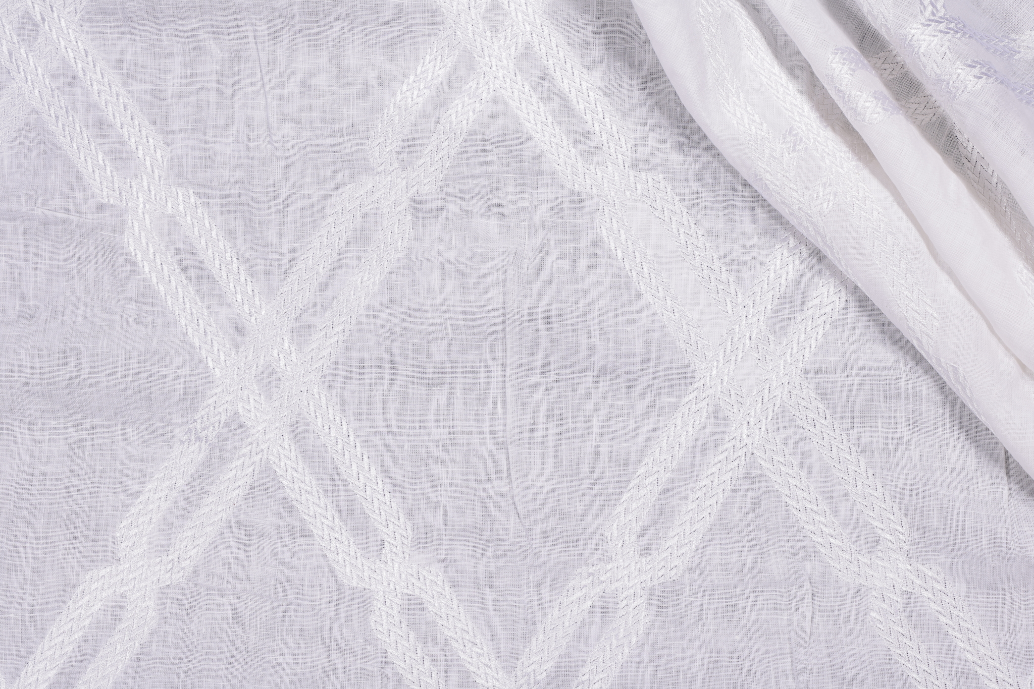 Thibaut Fusion Trellis W736150 Embroidered Sheer Linen Drapery Fabric in White Details