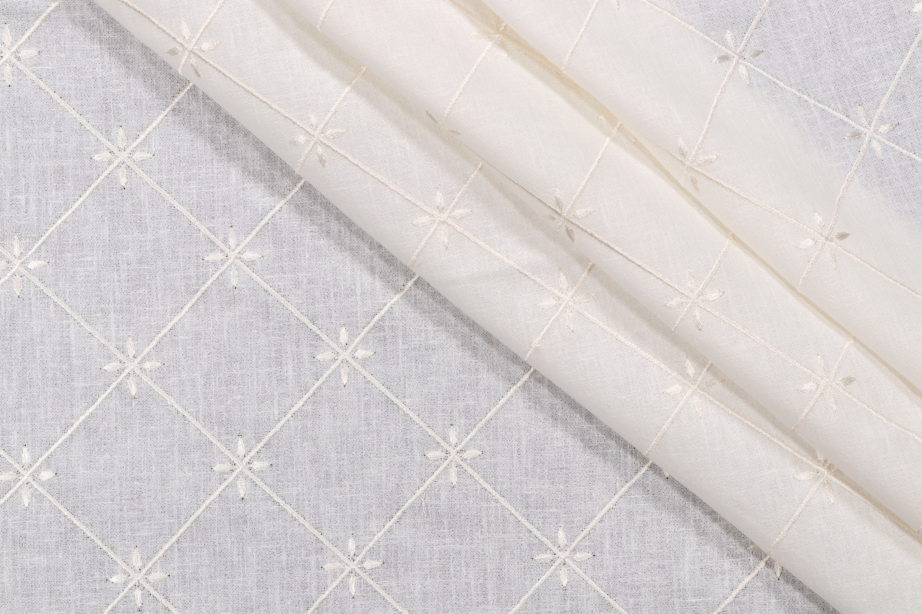 1 Yard Veranda Sheer Embroidered Drapery Fabric in Ivory Details