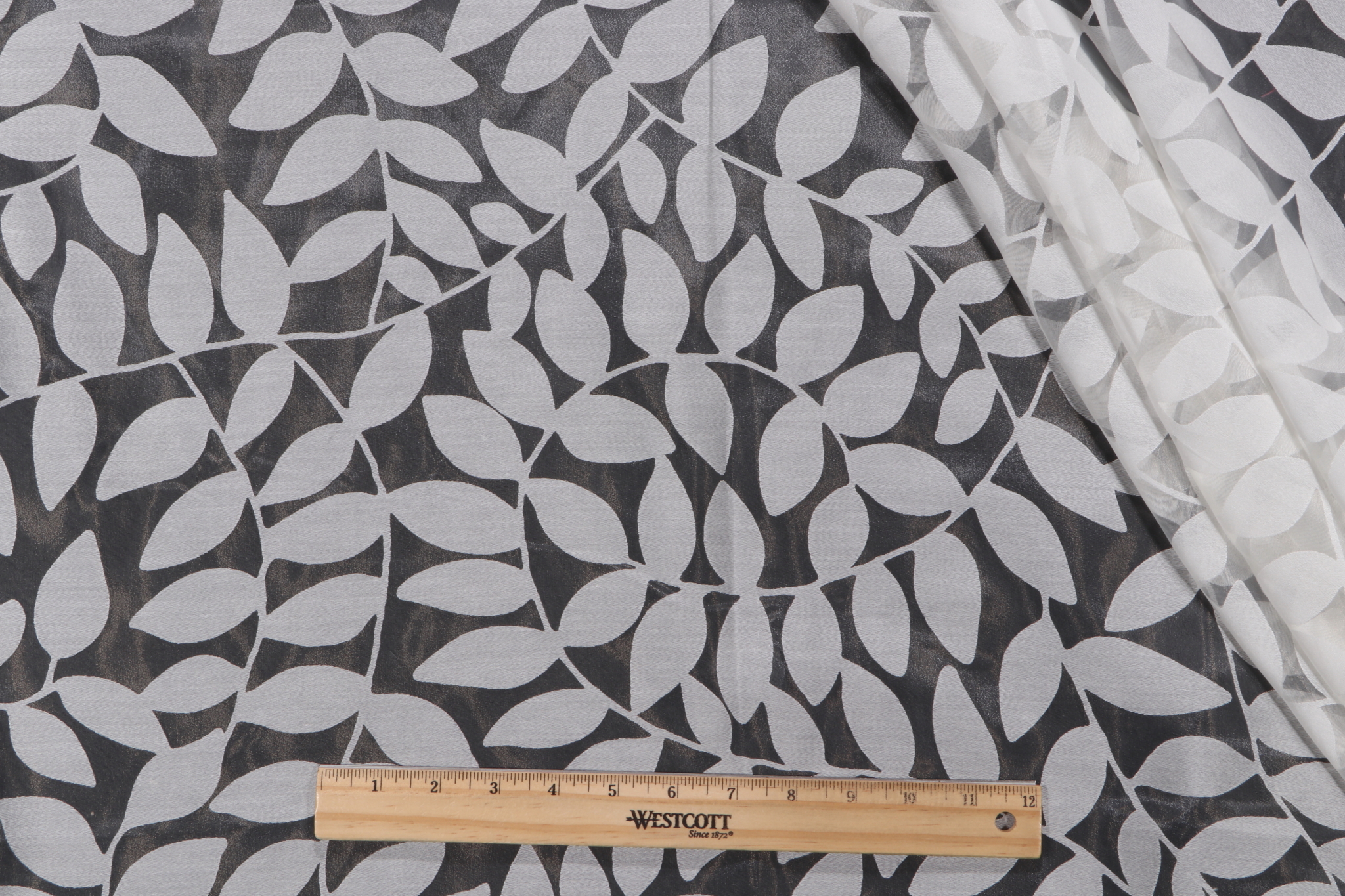 Waverly Be Leaf Me Sheer Drapery Fabric in Cream is a remnant. Fabric remnants refer to leftover pieces of fabric from production runs at manufacturing sites or pieces that remain from by the yard stock. The lengths of these remnants can vary from a few inches to several yards and are typically sold at a reduced price, since they represent remaining inventory.