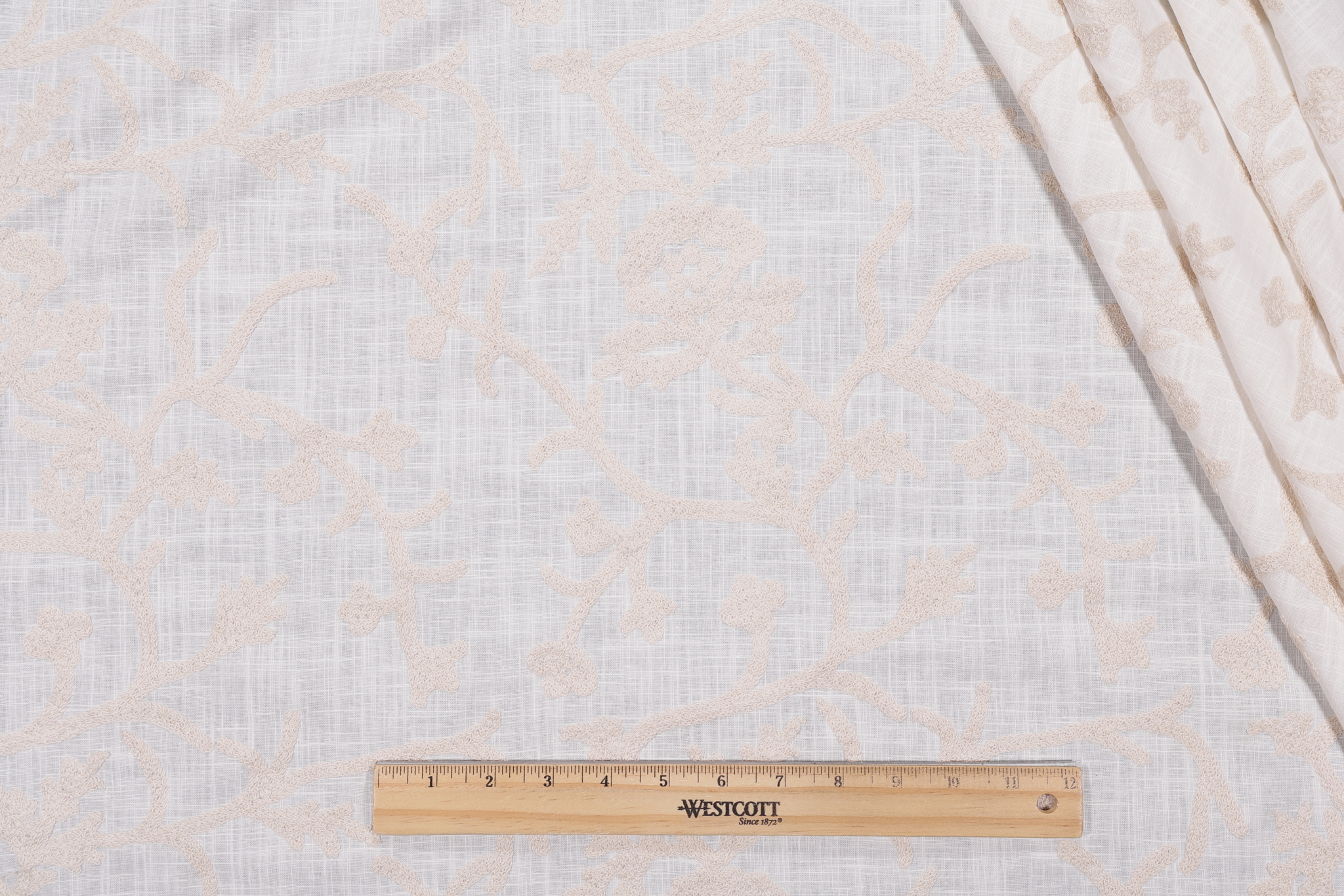 Whistler Semi-Sheer Embroidered Drapery Fabric in Snowflake is a remnant, which is sold as a whole piece.