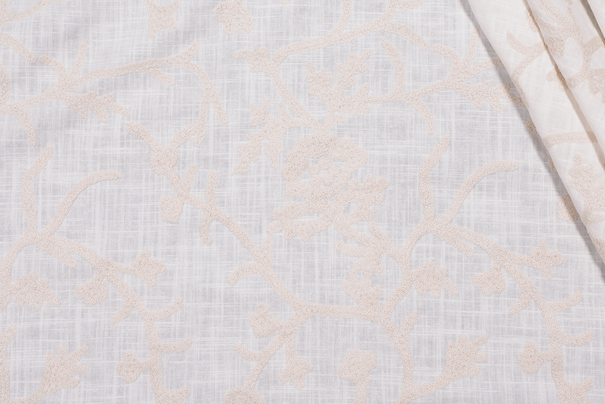 Whistler Semi-Sheer Embroidered Drapery Fabric in Snowflake is a remnant, which is sold as a whole piece.