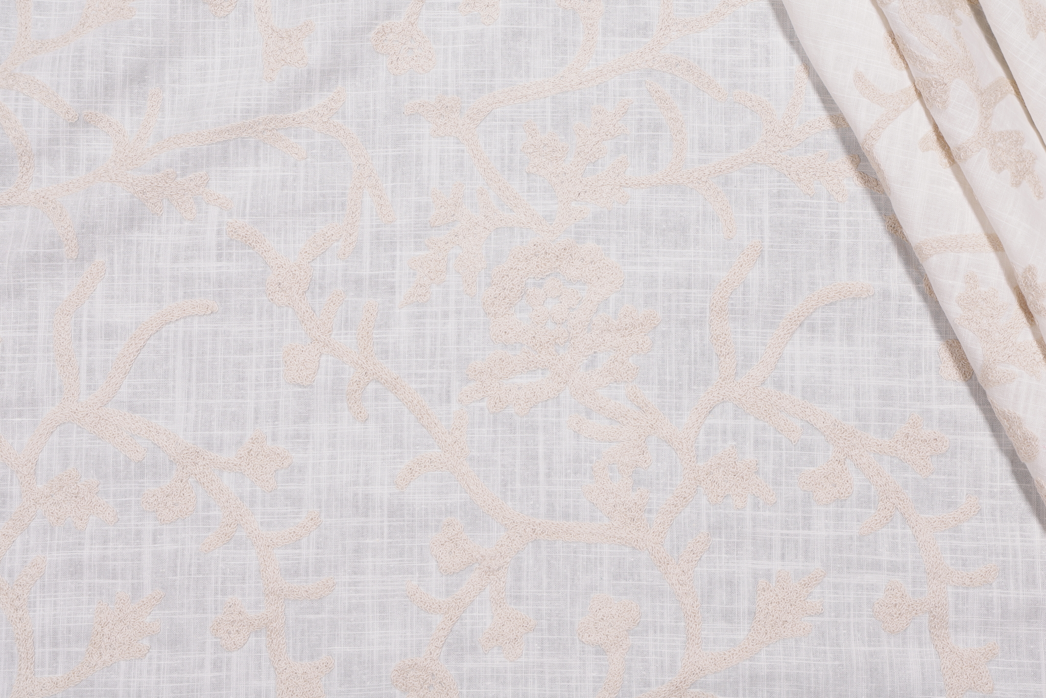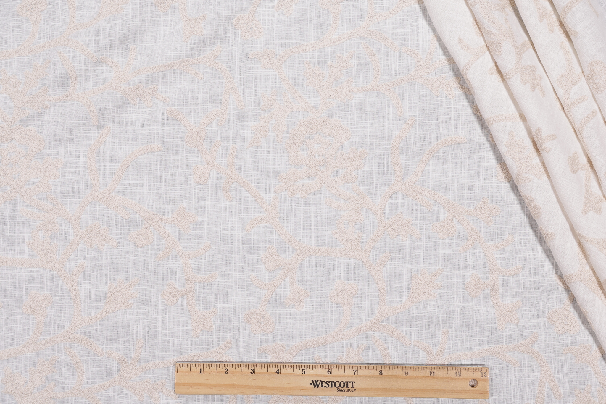 Whistler Semi-Sheer Embroidered Drapery Fabric in Snowflake is a remnant, which is sold as a whole piece.