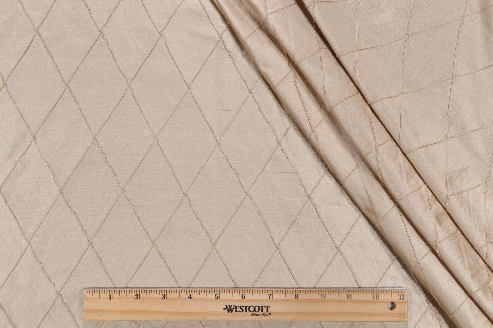 3 Yards Diamond Stitch Pintuck Silk Drapery Fabric in Latte Details