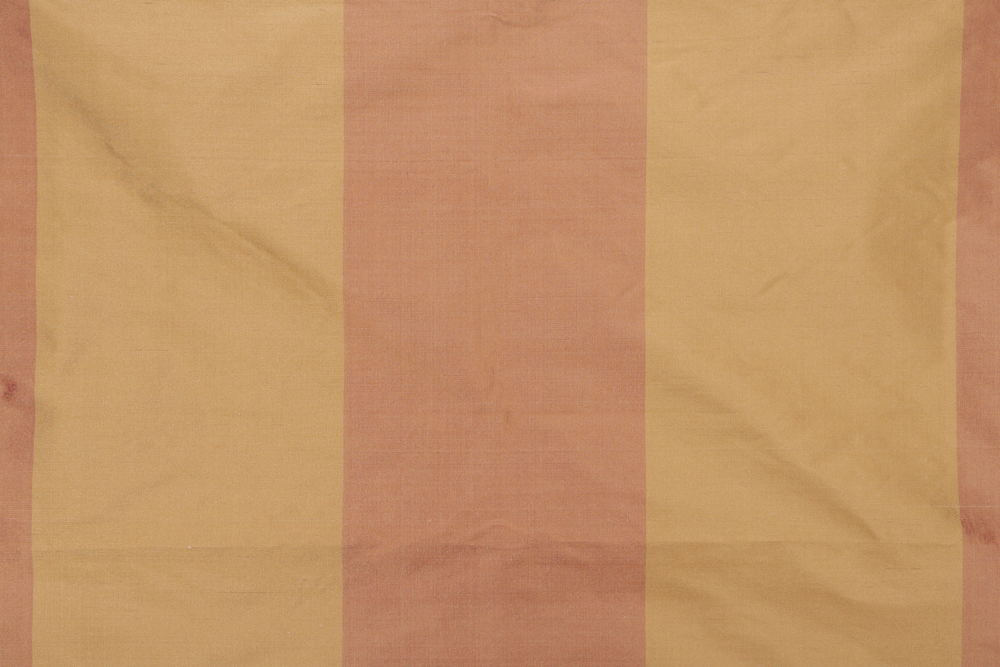 Milan Stripe Silk Decorator Fabric in Terracotta is a remnant. Fabric remnants refer to leftover pieces of fabric from production runs at manufacturing sites or pieces that remain from by the yard stock. The lengths of these remnants can vary from a few inches to several yards and are typically sold at a reduced price, since they represent remaining inventory.
