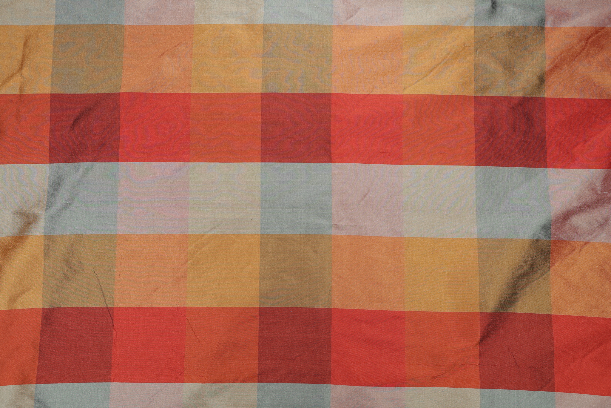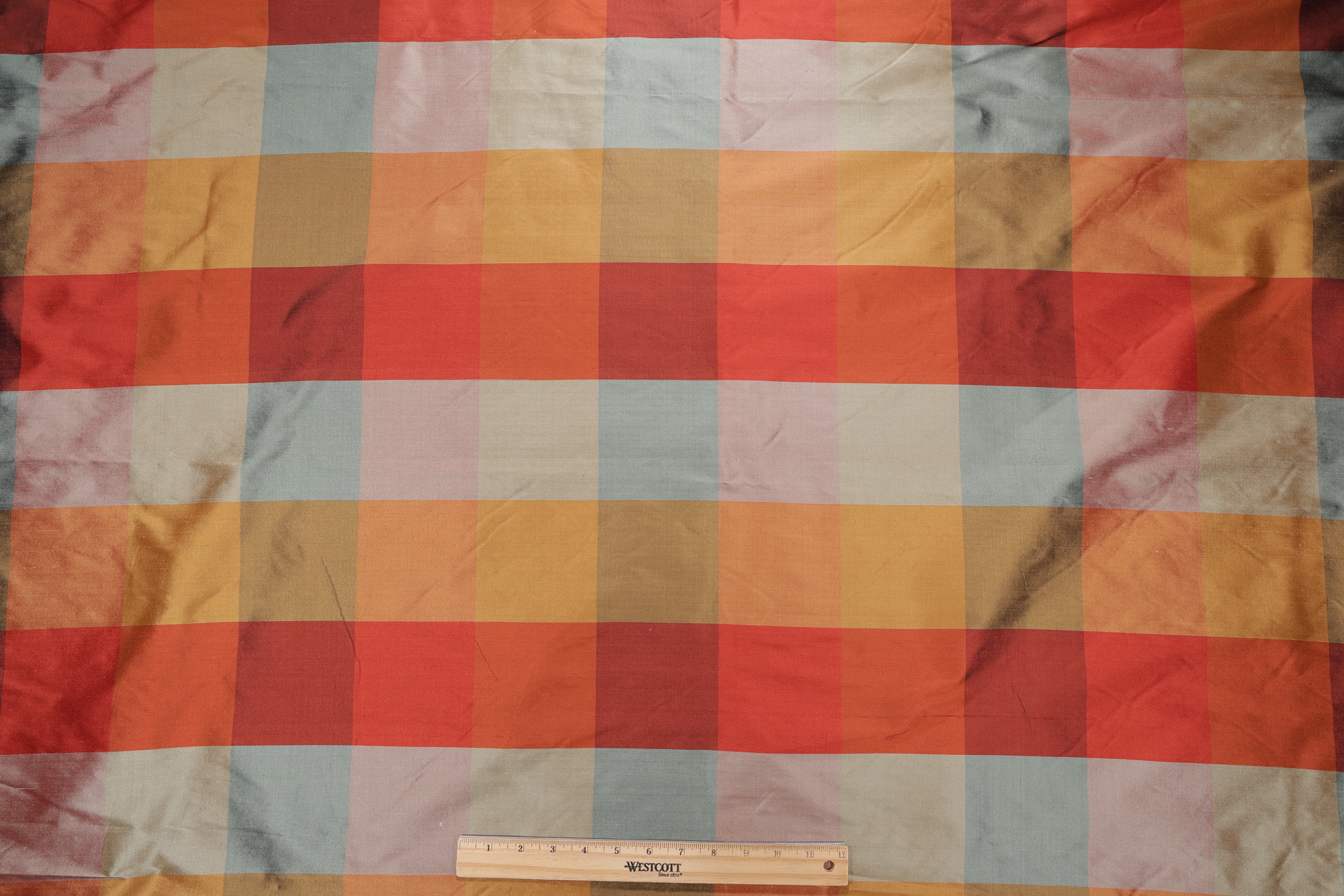 Scalamandre Smooth Plaid Silk Drapery Fabric in Fall is a remnant. Fabric remnants refer to leftover pieces of fabric from production runs at manufacturing sites or pieces that remain from by the yard stock. The lengths of these remnants can vary from a few inches to several yards and are typically sold at a reduced price, since they represent remaining inventory.