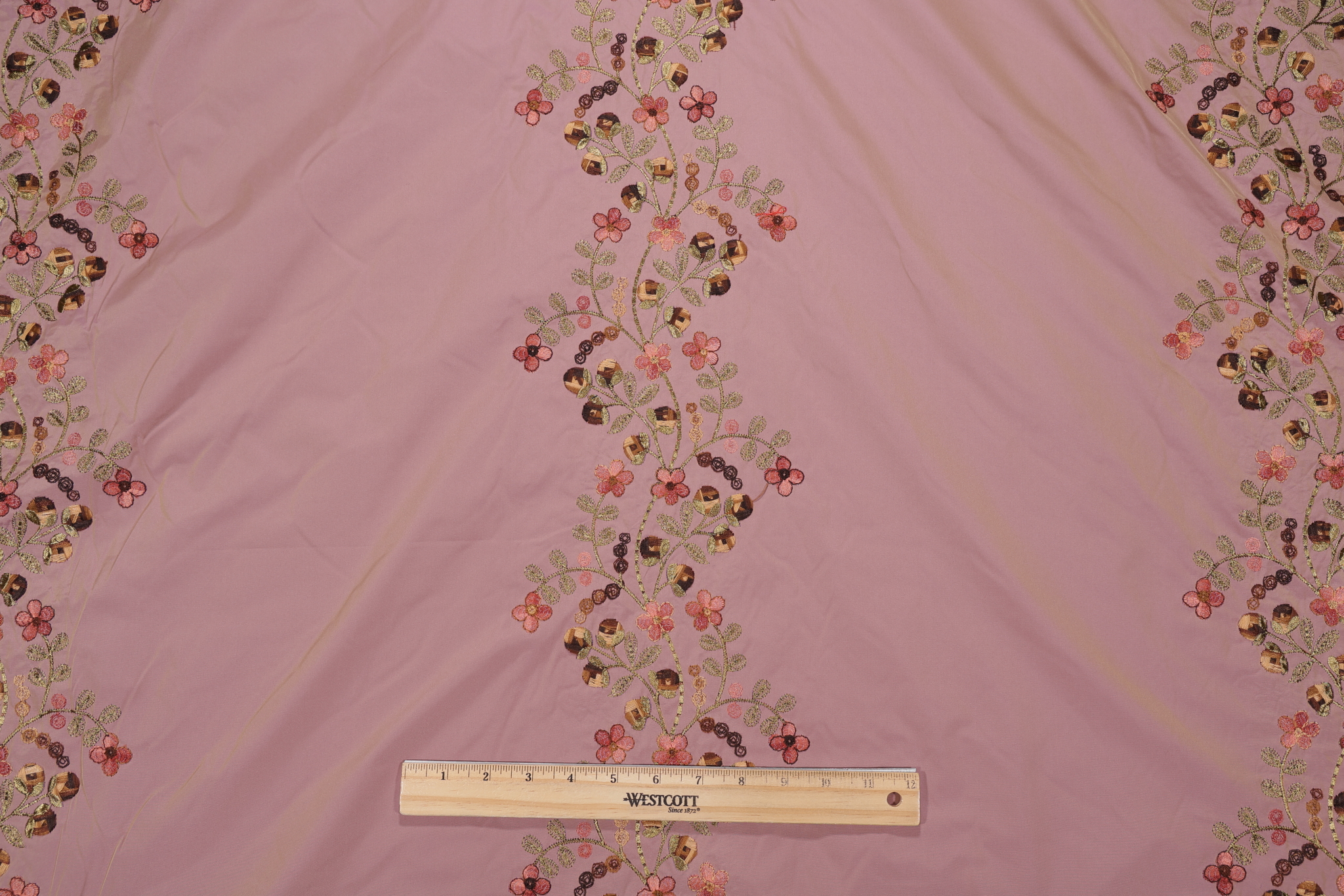 Scalamandre Sybele Embroidered Silk Drapery Fabric in Antique Rose is a remnant, which is sold as a whole piece.