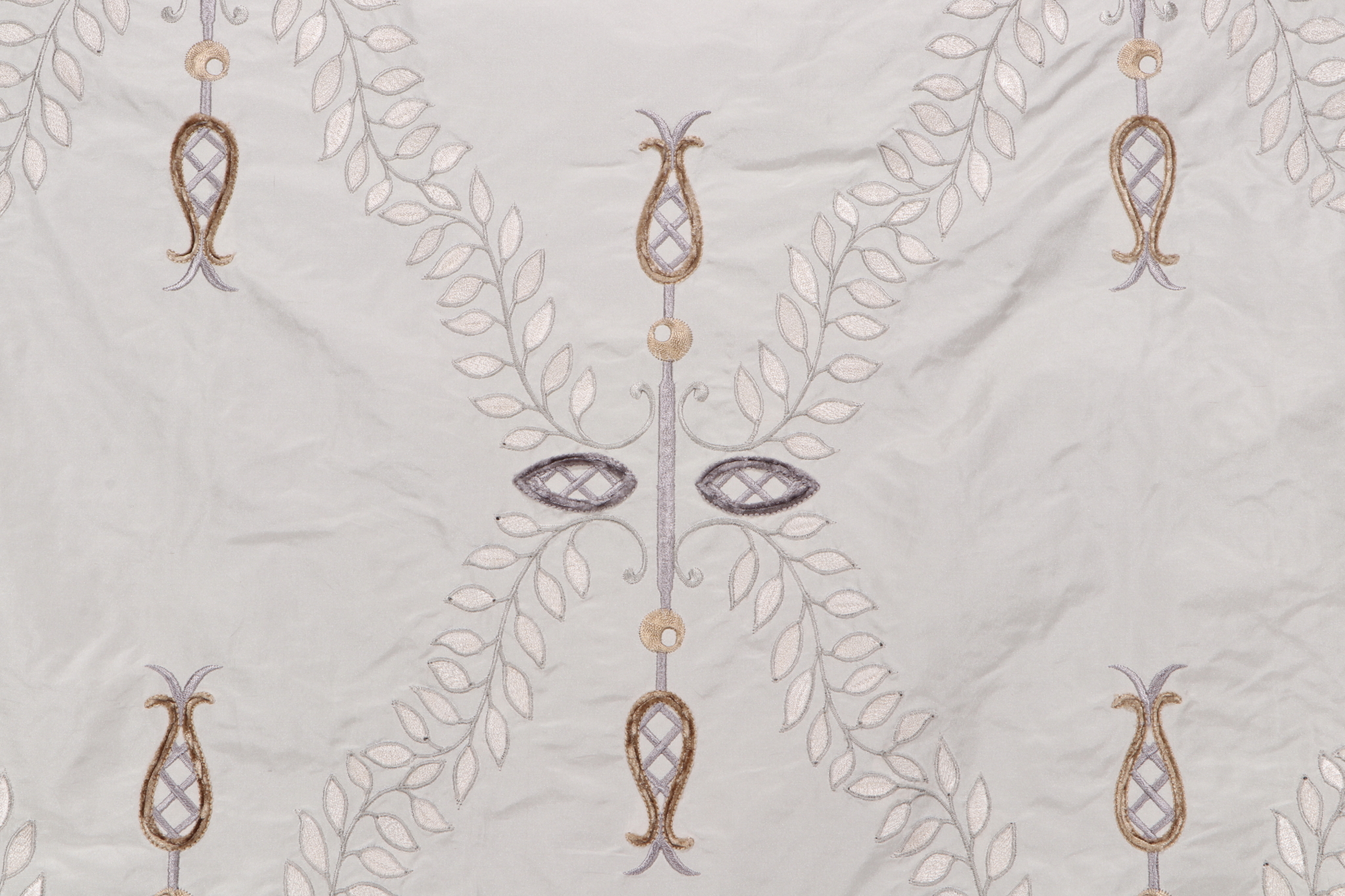10.25 Yards Scalamandre White Hall Embroidered Silk Drapery Fabric in Frost Details
