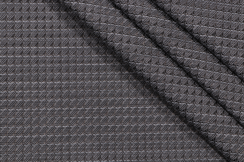 Phifertex Bevel Wicker Woven Vinyl Mesh Sling Chair Outdoor Fabric in Grey is a remnant, which is sold as a whole piece.