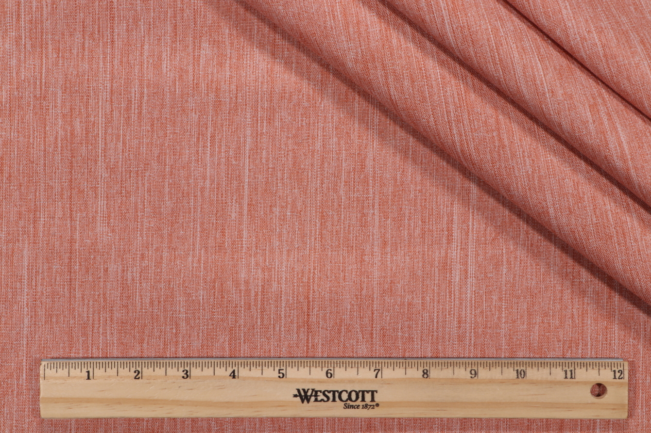 Lyra Woven Outdoor Fabric in Peach is a remnant. Fabric remnants refer to leftover pieces of fabric from production runs at manufacturing sites or pieces that remain from by the yard stock. The lengths of these remnants can vary from a few inches to several yards and are typically sold at a reduced price, since they represent remaining inventory.