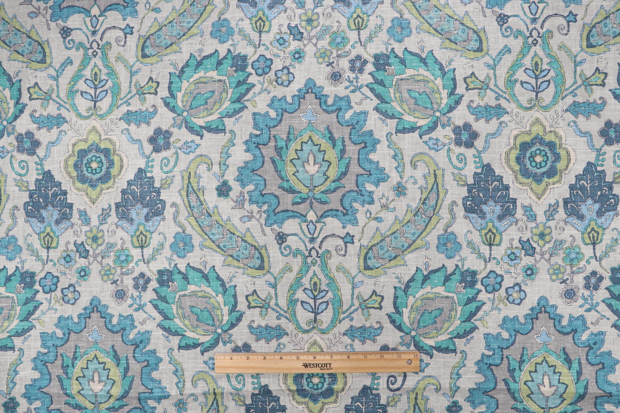 1 Yards Covington Bursa Printed Linen Blend Drapery Fabric in 521-Aquamarine Details