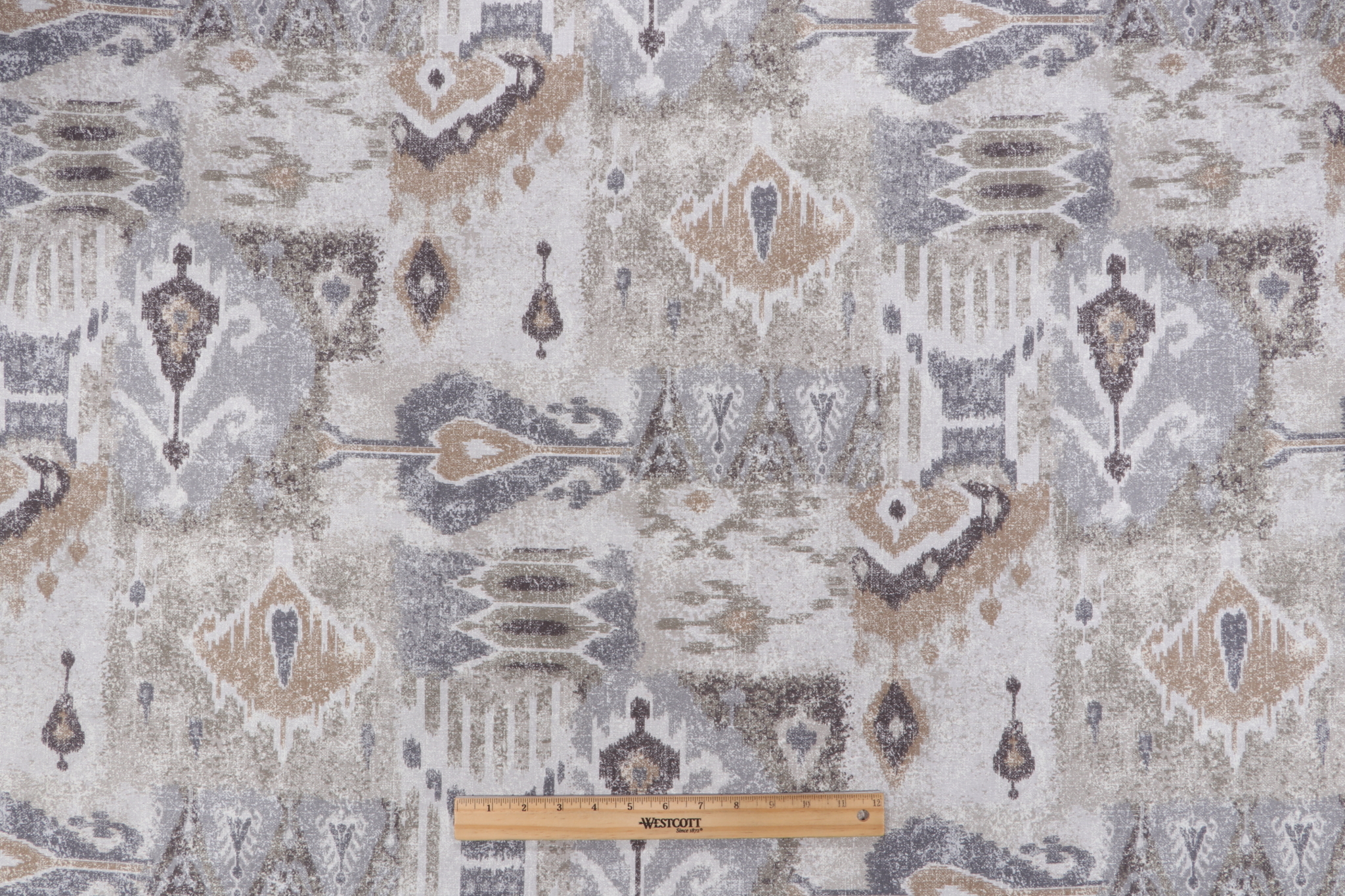 If you order a sample of Magnolia Home Jambi Printed Cotton Drapery Fabric in Desert the size of the swatch you receive will be approximately 4" x 6". This is enough fabric to verify color and texture, but may not be large enough to capture an entire pattern.