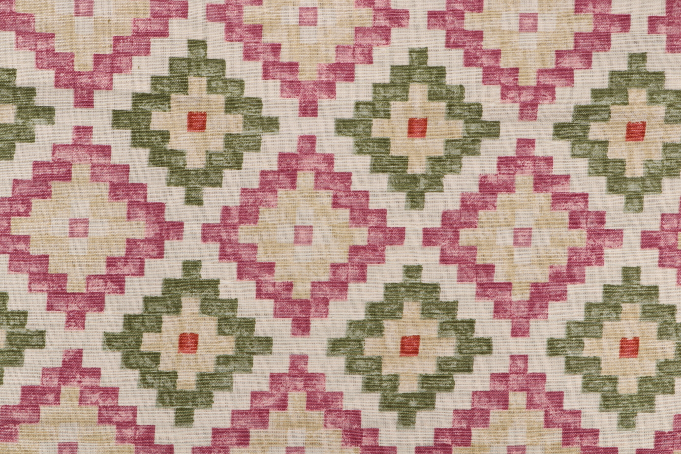 Scalamandre Diamond Printed Cotton Drapery Fabric in Bloom Details