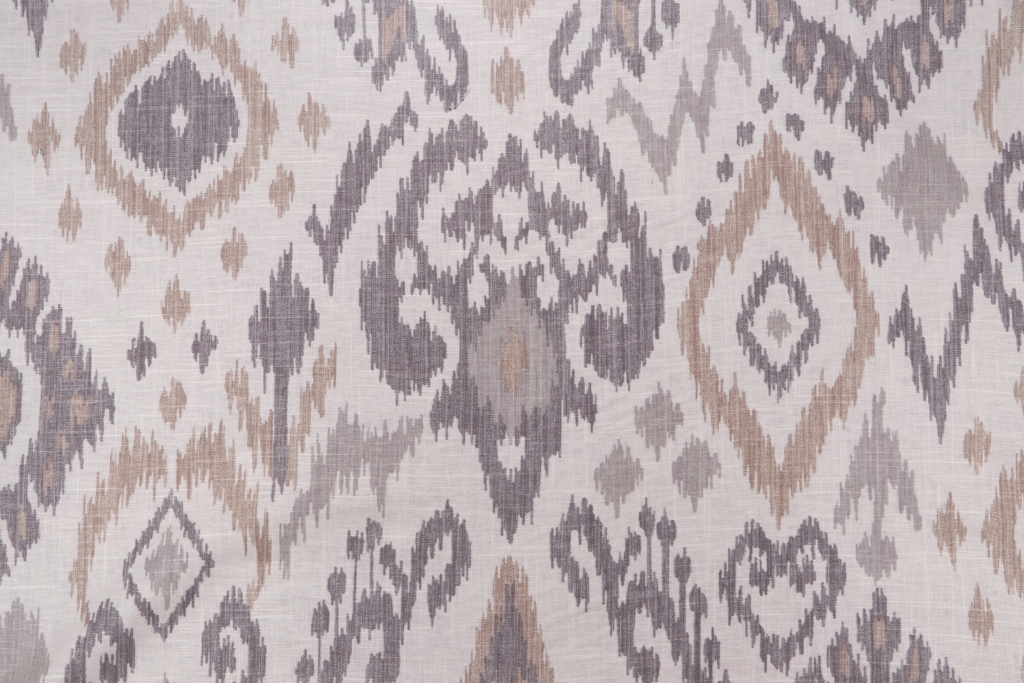Vern Yip Ikat Print Printed Linen Blend Drapery Fabric in Elephant for Trend is a remnant. Fabric remnants refer to leftover pieces of fabric from production runs at manufacturing sites or pieces that remain from by the yard stock. The lengths of these remnants can vary from a few inches to several yards and are typically sold at a reduced price, since they represent remaining inventory.