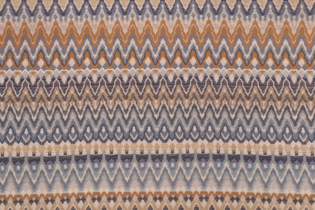Aztec Stripe Tapestry Upholstery Fabric in Denim is a remnant, which is sold as a whole piece.