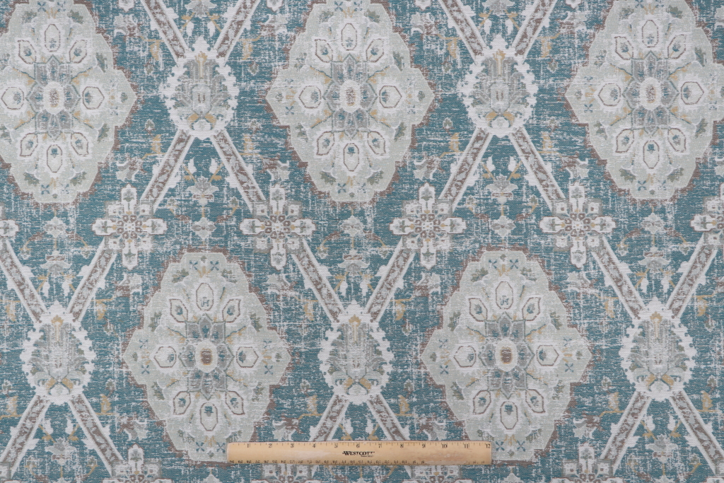 Kaufmann Carpet Heirloom Tapestry Upholstery Fabric in Peacock Details