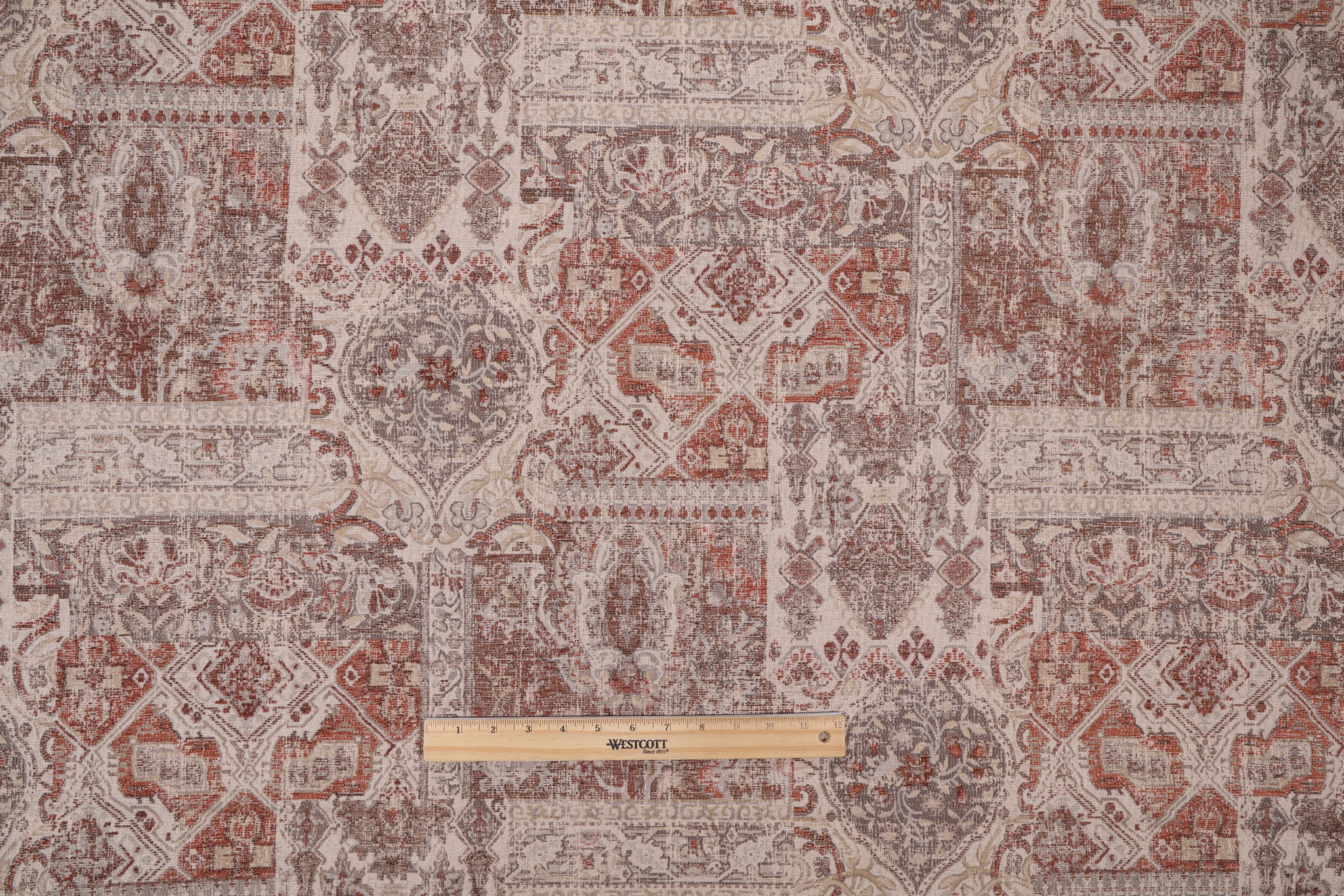 If you order a sample of Mill Creek Rokan Latex Backed Chenille Upholstery Fabric the size of the swatch you receive will be approximately 4" x 6". This is enough fabric to verify color and texture, but may not be large enough to capture an entire pattern.