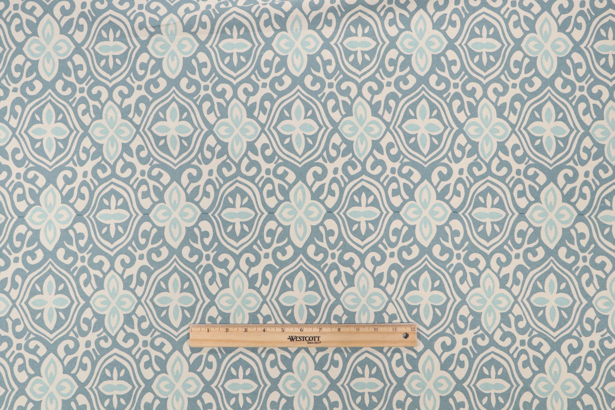 Please allow 2-3 business days for your Laura & Kiran Alhambra Printed Cotton Drapery Fabric in Spa sample to ship via USPS Priority mail.
