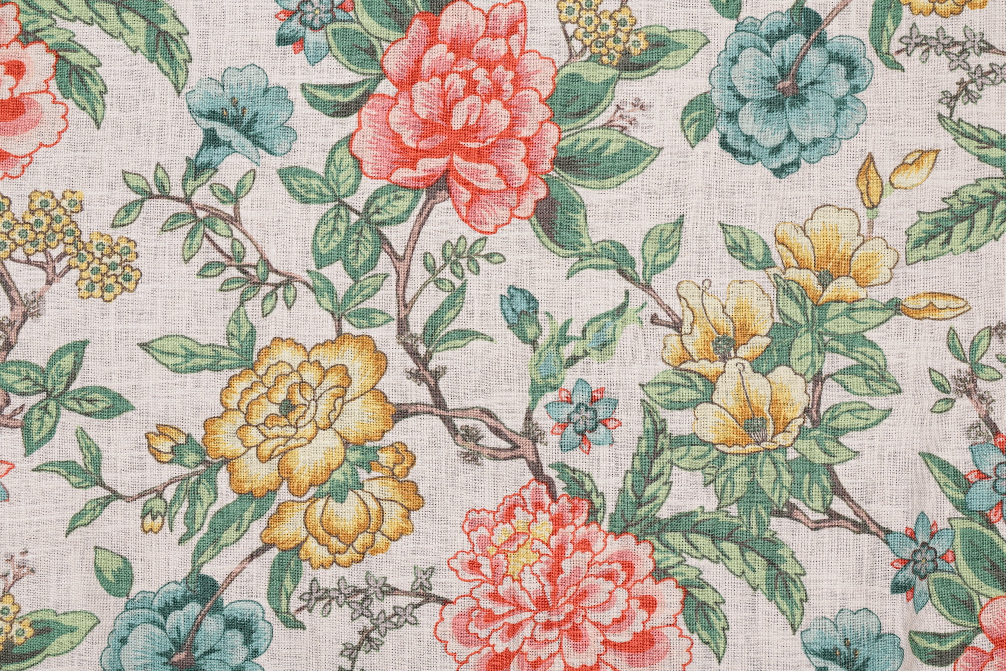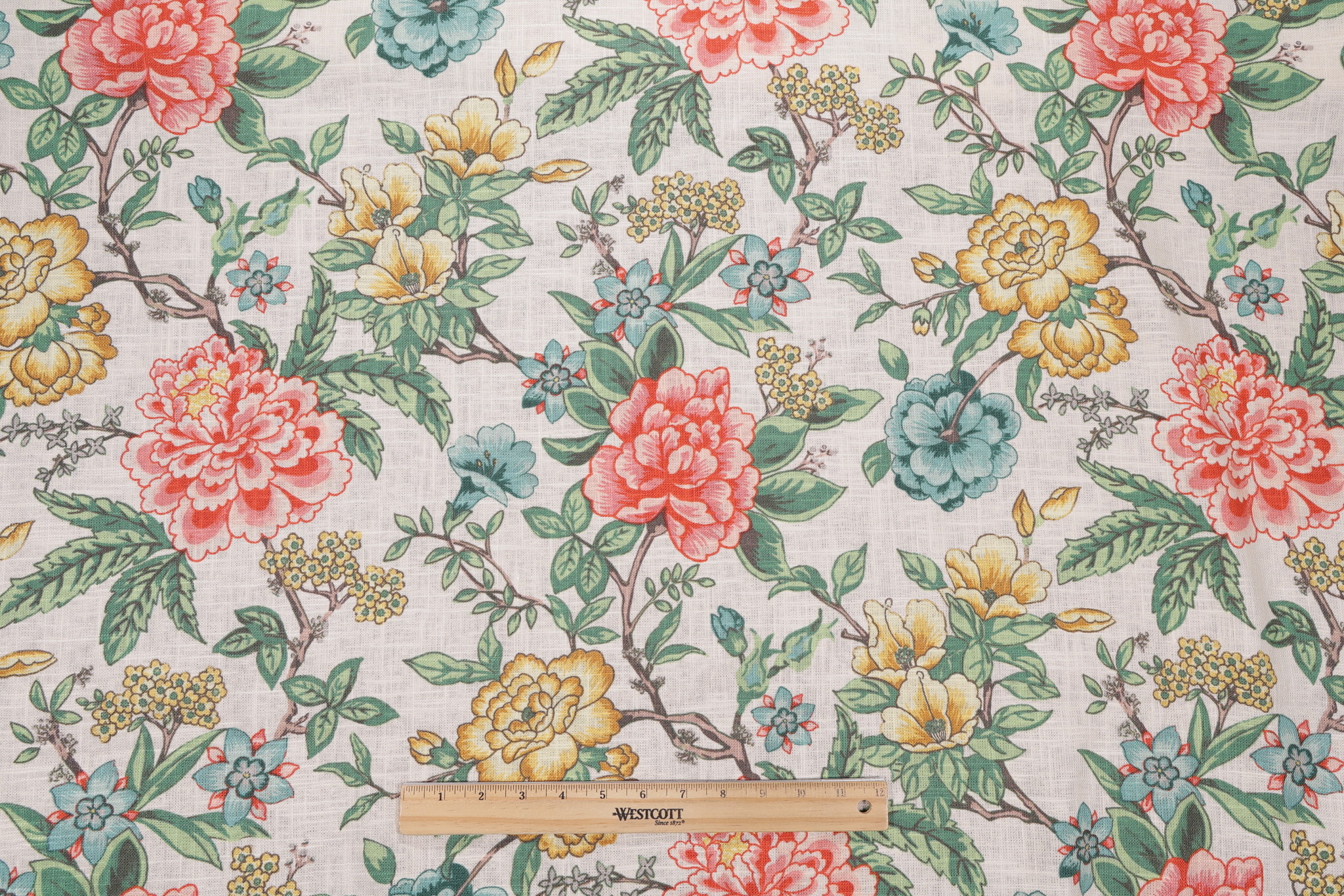 3.5 Yards Covington Amesbury Printed Linen Blend Drapery Fabric in 888-Spring Details