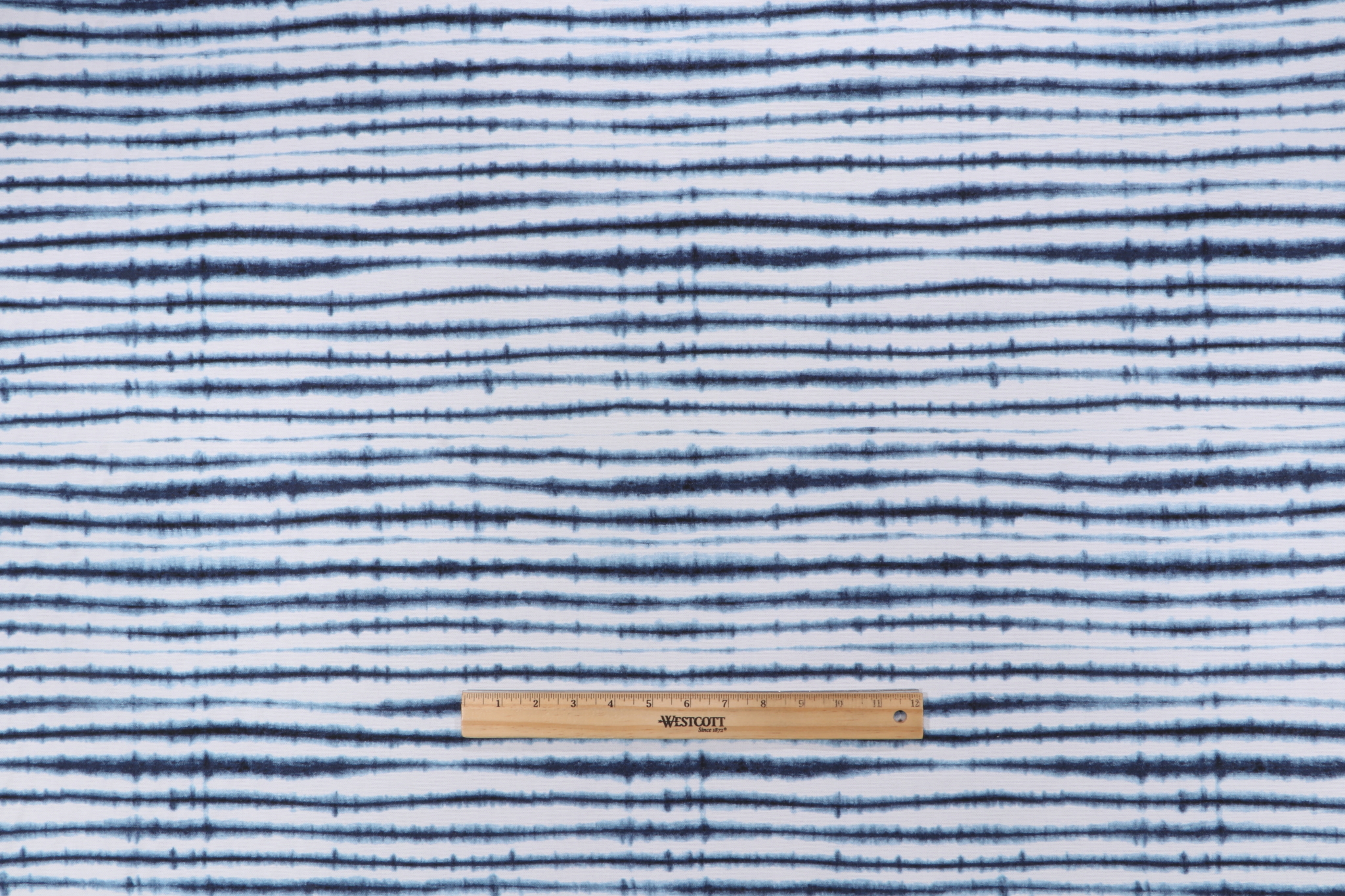Belle Maison Shibori Stripe Printed Drapery Fabric in Indigo is a remnant, which is sold as a whole piece.