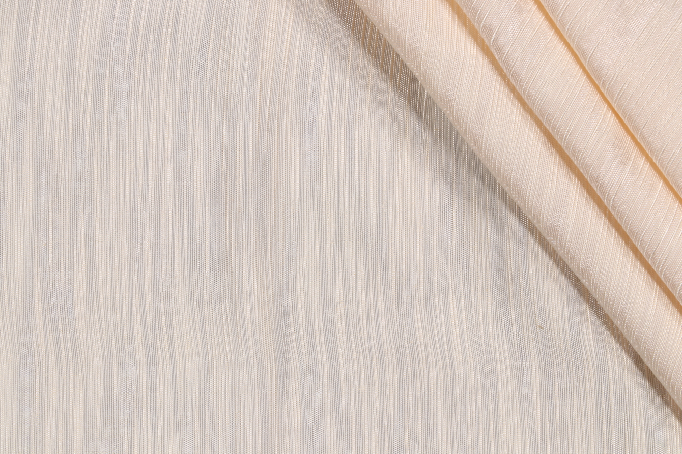 Scalamandre Strie Drapery Fabric in Vanilla is a remnant. Fabric remnants refer to leftover pieces of fabric from production runs at manufacturing sites or pieces that remain from by the yard stock. The lengths of these remnants can vary from a few inches to several yards and are typically sold at a reduced price, since they represent remaining inventory.