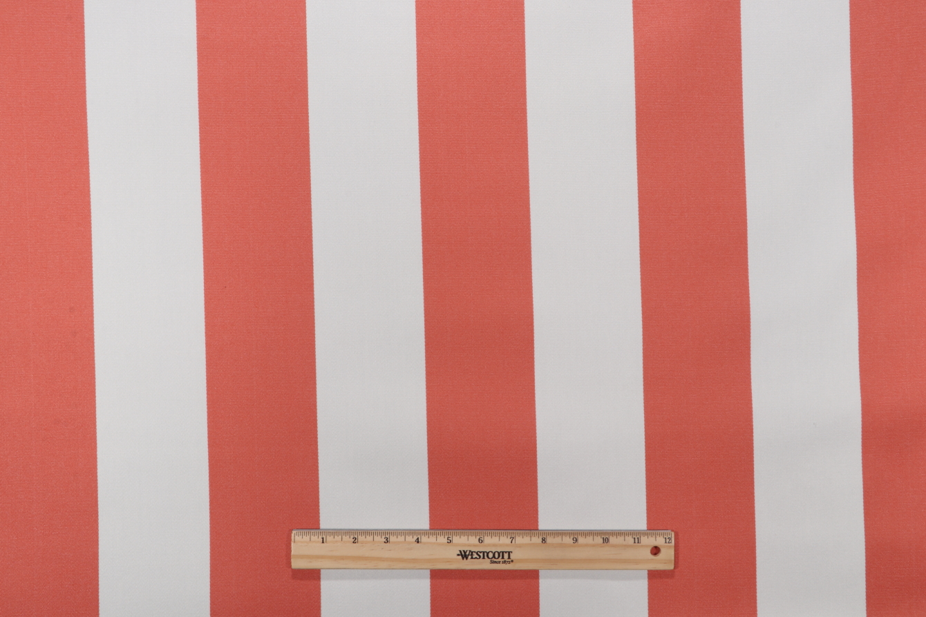 1 Yards Functional Fabrics Cabana Stripe Woven Latex-Backed High UV Polyester Outdoor Fabric in Coral Details