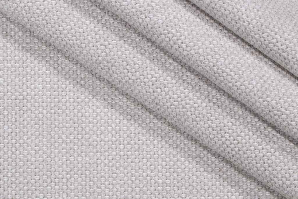 Perennials Basketweave Woven Solution Dyed Acrylic Outdoor Fabric in Fog is a remnant, which is sold as a whole piece.
