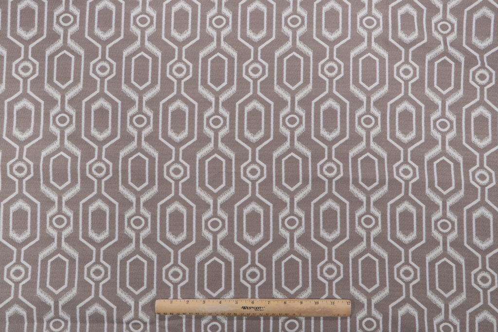 .75 Yards Phifer Chainlink Scrollwork Woven Olefin Outdoor Fabric in Mushroom Details