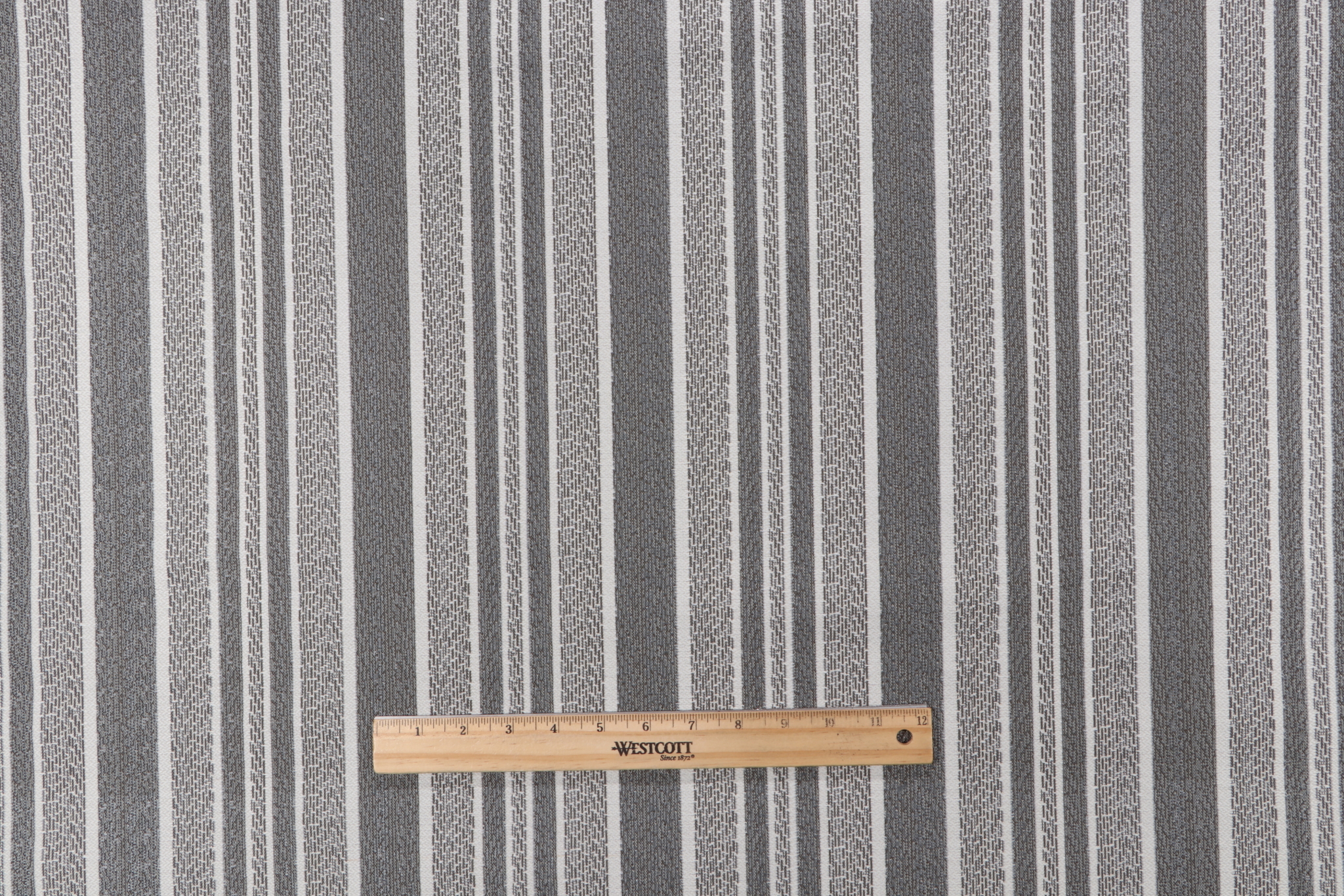 This listing showcases 4.38 yards of Geobella Stripe, a woven outdoor fabric by Phifertex. Gray, dim gray, silver, dark gray, and dark olive green are the primarily featured colors in this fabric. This fabric can be used for outdoor throw pillows, seat cushions for a set of dining chairs, or even waterproof tote bags and picnic blankets. Elevate your interiors with Phifertex fabrics, a trusted name in fine textiles and refined design. Note: If you are unsure about the suitability of this fabric for your specific use case please contact us prior to ordering.
